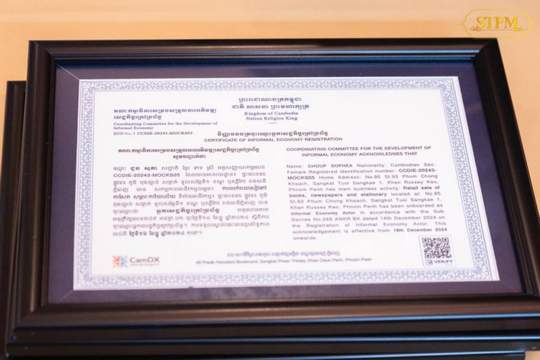 ៣/ ក្រោយចុះឈ្មោះ និងទទួលបានការអនុម័តរួច បងប្អូននឹងទទួលបានវិញ្ញាបនបត្រចុះឈ្មោះអ្នកសេដ្ឋកិច្ចក្រៅប្រព័ន្ធ ដែលជាការបញ្ជាក់នៃការទទួលស្គាល់តួនាទី និងការរួមចំណែករបស់បងប្អូនដល់សេដ្ឋកិច្ចជាតិ,