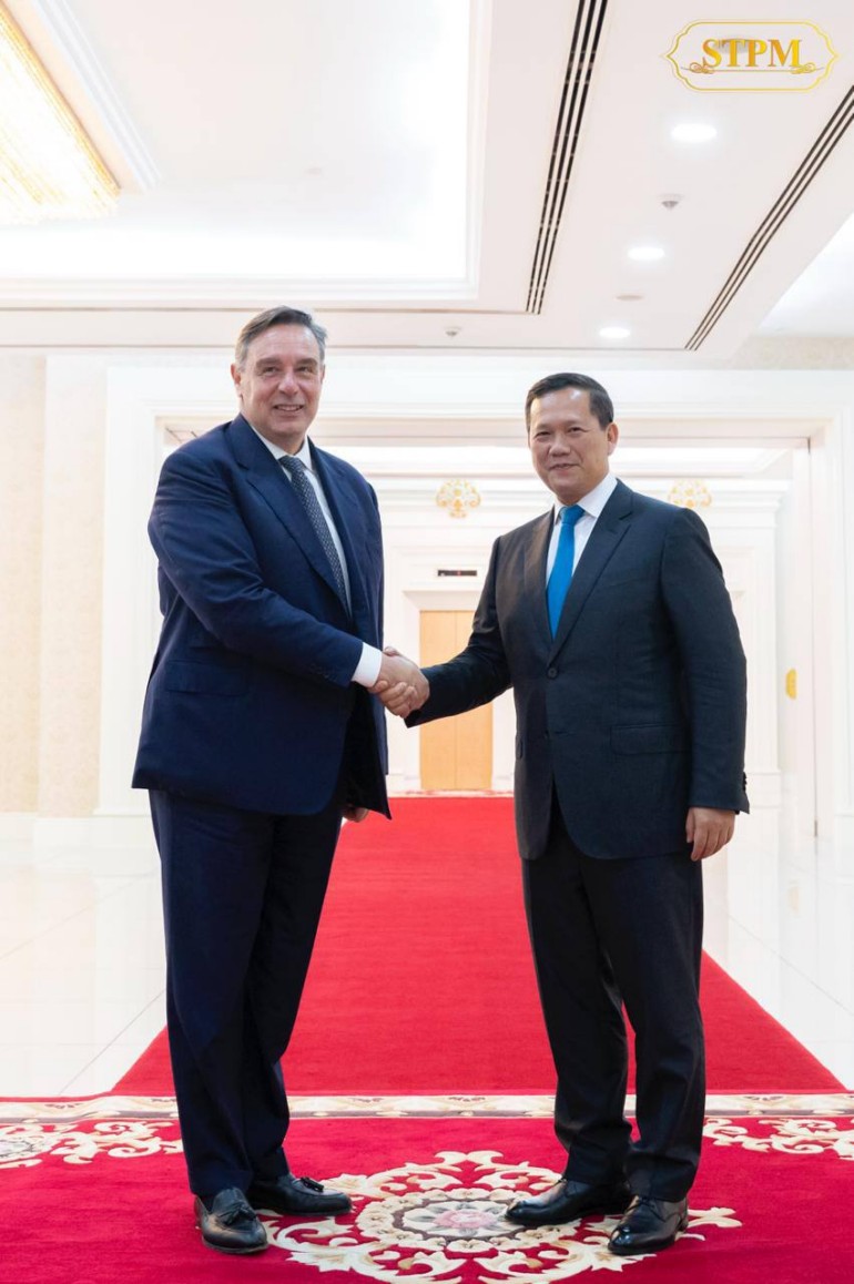 ភ្នំពេញ ៖ នារសៀលថ្ងៃទី១៦ ខែធ្នូ ឆ្នាំ២០២៤ សម្ដេចមហាបវរធិបតី ហ៊ុន ម៉ាណែត នាយករដ្ឋមន្ត្រីនៃព្រះរាជាណាចក្រកម្ពុជា បានអនុញ្ញាតឱ្យលោក Riccardo Puliti អនុប្រធានប្រចាំតំបន់អាស៊ី និងប៉ាស៊ីហ្វិក នៃសាជីវកម្មហិរញ្ញវត្ថុអន្តរជាតិ (IFC) ចូលជួបសម្តែងការគួរសម និងពិភាក្សាការងារ នៅវិមានសន្តិភាព។