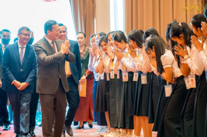 រាជធានីភ្នំពេញ ៖ នាព្រឹកថ្ងៃចន្ទ ទី២៣ ធ្នូ ២០២៤ សម្តេចមហាបវរធិបតី ហ៊ុន ម៉ាណែត នាយករដ្ឋមន្ត្រីនៃព្រះរាជាណាចក្រកម្ពុជា បានអញ្ជើញជួបសំណេះសំណាលជាមួយសិស្សនិទ្ទេស A សម្រាប់ការប្រឡងសញ្ញាបត្រសិក្សាទុតិយភូមិ និងការប្រឡងសញ្ញាបត្របច្ចេកទេស និងវិជ្ជាជីវៈកម្រិត ៣ ឆ្នាំ២០២៤ ចំនួន ២ ២២៥ នាក់ ។