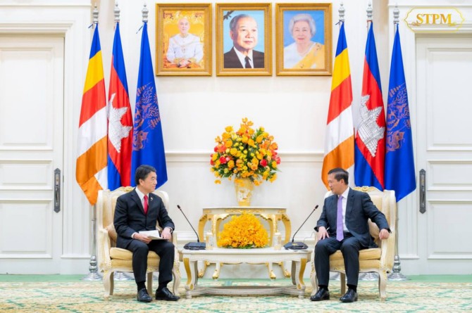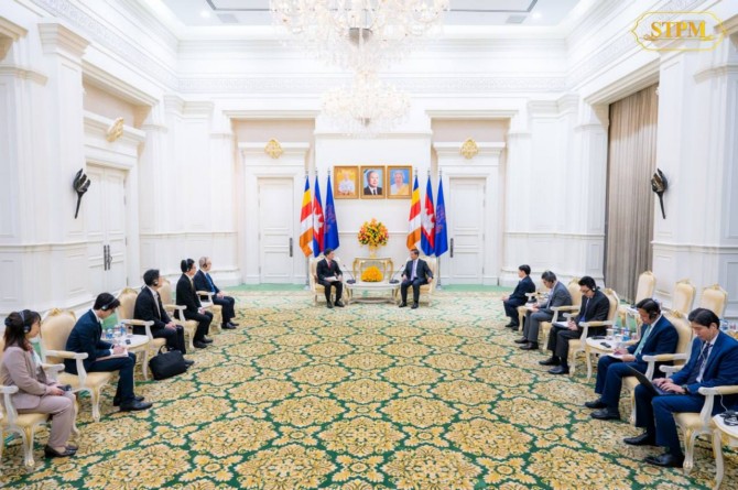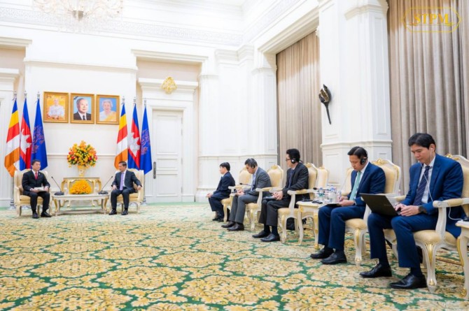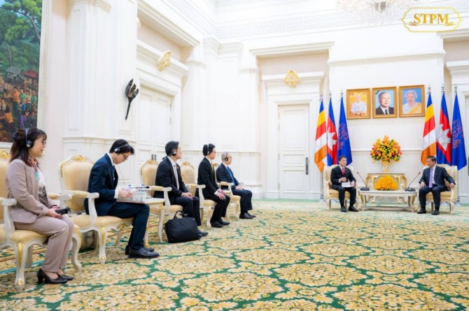 ភ្នំពេញ-វិមានសន្តិភាព ៖ នាព្រឹកថ្ងៃទី២៧ ខែធ្នូ ឆ្នាំ២០២៤, សម្ដេចមហាបវរធិបតី ហ៊ុន ម៉ាណែត នាយករដ្ឋមន្ត្រីនៃព្រះរាជាណាចក្រកម្ពុជា បានអនុញ្ញាតឱ្យឯកឧត្តម MURAI Yoshihiro អភិបាលខេត្តមីយ៉ាហ្គិ និងជាប្រធានសមាគមអភិបាលខេត្ត នៃប្រទេសជប៉ុន ចូលជួបសម្ដែងការគួរសម និងពិភាក្សាការងារ នៅវិមានសន្ដិភាព។