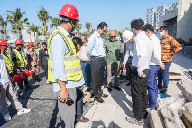 ព្រះសីហនុ ៖ នាព្រឹកថ្ងៃព្រហស្បត្តិ៍ទី២ ខែមករា ឆ្នាំ២០២៥ម្សិលមិញនេះ ឯកឧត្តម ម៉ាង ស៊ីណេត អភិបាល នៃគណ:អភិបាលខេត្តព្រះសីហនុ អញ្ជើញចុះពិនិត្យវឌ្ឍន៍ភាព នៃគម្រោងសាងសង់របស់ក្រុមហ៊ុន ផឹនីនស្យ៊ូឡឺ បេ អ៊ិនវេសម៉ិន ឯ.ក (peninsula bay investment co.,ltd.) មានទីតាំងស្ថិតនៅសង្កាត់លេខ៤ ក្រុង ព្រះសីហនុ ខេត្តព្រះសីហនុ ដោយមានការចូលរួមពីមន្ត្រីបច្ចេក ទេស និងលោកអភិបាលក្រុងព្រះសីហនុ ។