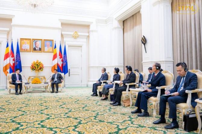 នាព្រឹកថ្ងៃទី១០ ខែមករា ឆ្នាំ២០២៥, សម្ដេចមហាបវរធិបតី ហ៊ុន ម៉ាណែត នាយករដ្ឋមន្ត្រីនៃព្រះរាជាណាចក្រកម្ពុជា បានអនុញ្ញាតឱ្យ ឯកឧត្តម KATO Katsunobu រដ្ឋមន្ត្រីក្រសួងហិរញ្ញវត្ថុជប៉ុន ចូលជួបសម្ដែងការគួរសម និងពិភាក្សាការងារ នៅវិមានសន្ដិភាព។