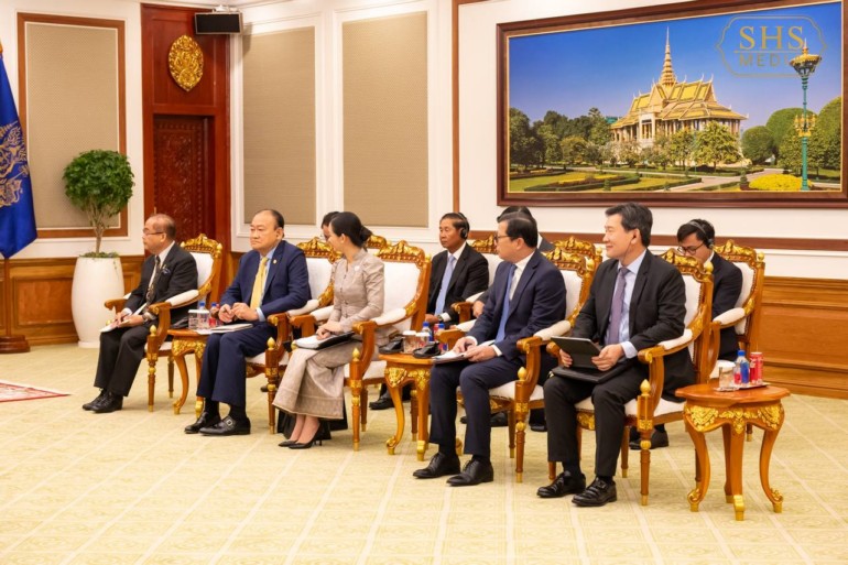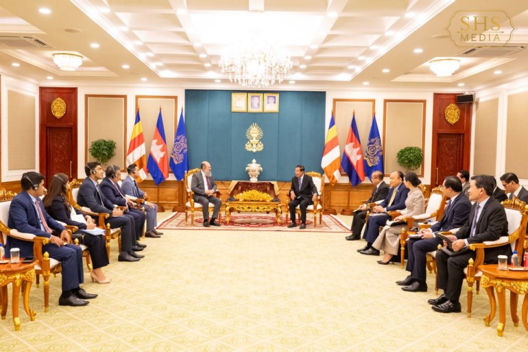 ឆ្លៀតឱកាសនោះដែរ សម្តេចតេជោ ជម្រាបជូនឯកឧត្តមរដ្ឋមន្ត្រី អំពីការវិវឌ្ឍវិស័យសេដ្ឋកិច្ច និងពាណិជ្ជកម្មរបស់កម្ពុជា ដែលមានការរីកចម្រើនជាលំដាប់ក្នុងរយៈពេលកន្លងមក។ ជាមួយគ្នានេះ សម្តេចតេជោ បានគូសបញ្ជាក់អំពីការខិតខំពង្រឹងភាពធន់នៃសេដ្ឋកិច្ចរបស់កម្ពុជា តបទៅនឹងរបត់នយោបាយសេដ្ឋកិច្ចរបស់ប្រទេសធំៗ និងស្ថានភាពនៃរបបអនុគ្រោះពន្ធផងដែរ។ សម្តេចតេជោ ក៏បានជម្រាបជូនអំពីប្រវត្តិសាស្ត្រ និងការកសាង និងថែរក្សាសន្តិភាព និងស្ថិរភាពកម្ពុជារយៈពេលវែង និងមូលដ្ឋាននៃការផ្ទេរអំណាចរបស់សម្តេច ជូនថ្នាក់ដឹកនាំរាជរដ្ឋាភិបាលជំនាន់ថ្មី។ សម្តេច ក៏បានសម្តែងនូវភាពជឿជាក់ចំពោះសមត្ថភាពរបស់ថ្នាក់ដឹកនាំជំនាន់ថ្មីទាំងនោះ ក្នុងកិច្ចខិតខំលើកកម្ពស់ការអភិវឌ្ឍជូនជាតិមាតុភូមិ។ សម្តេចតេជោ បានលើកឡើងផងដែរអំពីស្ថានភាពគោលនយោបាយសេដ្ឋកិច្ចអន្តរជាតិនានា ដូចជាគោលនយោបាយរបស់សហរដ្ឋអាមេរិក តាមរយៈការឡើងកាន់តំណែងសាជាថ្មីរបស់ លោកប្រធានាធិបតី ដូណាល់ ត្រាំ និងការវិវត្តរបស់ក្រុមប្រទេស BRICSជាដើម។