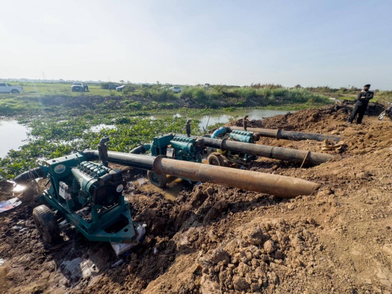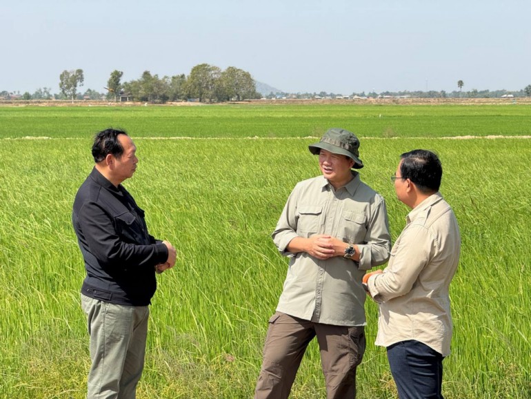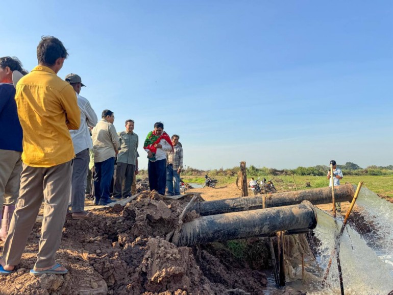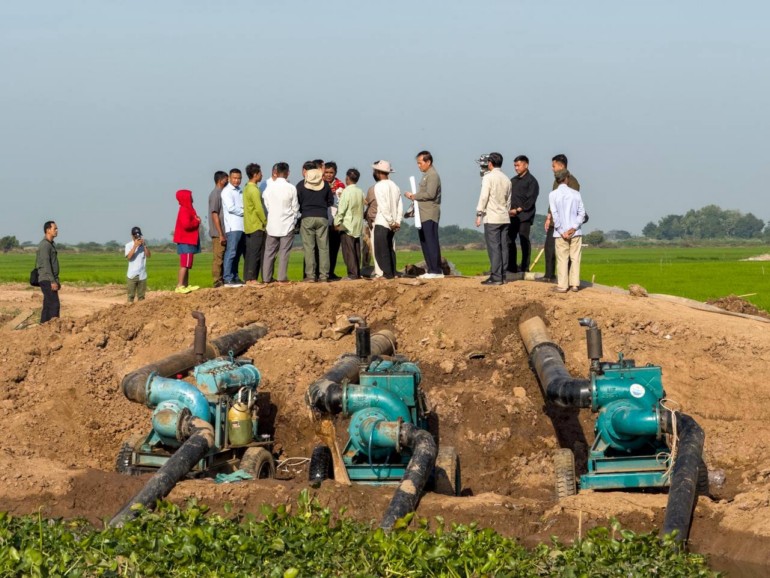 ខេត្តកណ្តាល និងខេត្តតាកែវ ៖ ព្រឹកថ្ងៃពុធ ទី២៩ ខែមករា ឆ្នាំ២០២៥ សម្តេចធិបតី ហ៊ុន ម៉ាណែត នាយករដ្ឋមន្ត្រី នៃព្រះរាជាណាចក្រកម្ពុជា បានអញ្ជើញចុះទៅពិនិត្យការអន្តរាគមន៍បូមទឹកសង្គ្រោះស្រូវរបស់បងប្អូន ប្រជាកសិករដែលកំពុងមានតម្រូវការទឹក ក្នុងការដាក់បំពេញស្រូវនៅព្រែកអំបិល ស្រុកស្អាង ខេត្តកណ្តាល និងស្រុកព្រៃកប្បាស ខេត្តតាកែវ ចំនួនជិត ២ពាន់ហិកតា និងតាមបណ្តោយប្រឡាយហនុមាន ឃុំពត់សរ ស្រុកបាទី ខេត្តតាកែវ ចំនួនជិត ៤ពាន់ហិកតា ។ ការអន្តរាគមន៍ដែលឈរលើមានប្រភពទឹកគ្រប់គ្រាន់, រាជរដ្ឋាភិបាល គឺបានខិតខំគ្រប់លទ្ធភាពក្នុងការបូមទឹកសង្គ្រោះផង ហើយក៏បានអន្តរាគមន៍ពង្វាងទឹកចេញពីទំនប់ទឹកតាសាល មកបំពេញបន្ថែមក្នុងទន្លេបាទី ដើម្បីអាចនឹងធានាដល់ការប្រើប្រាស់នារដូវប្រាំងខាងមុខផងដែរ។