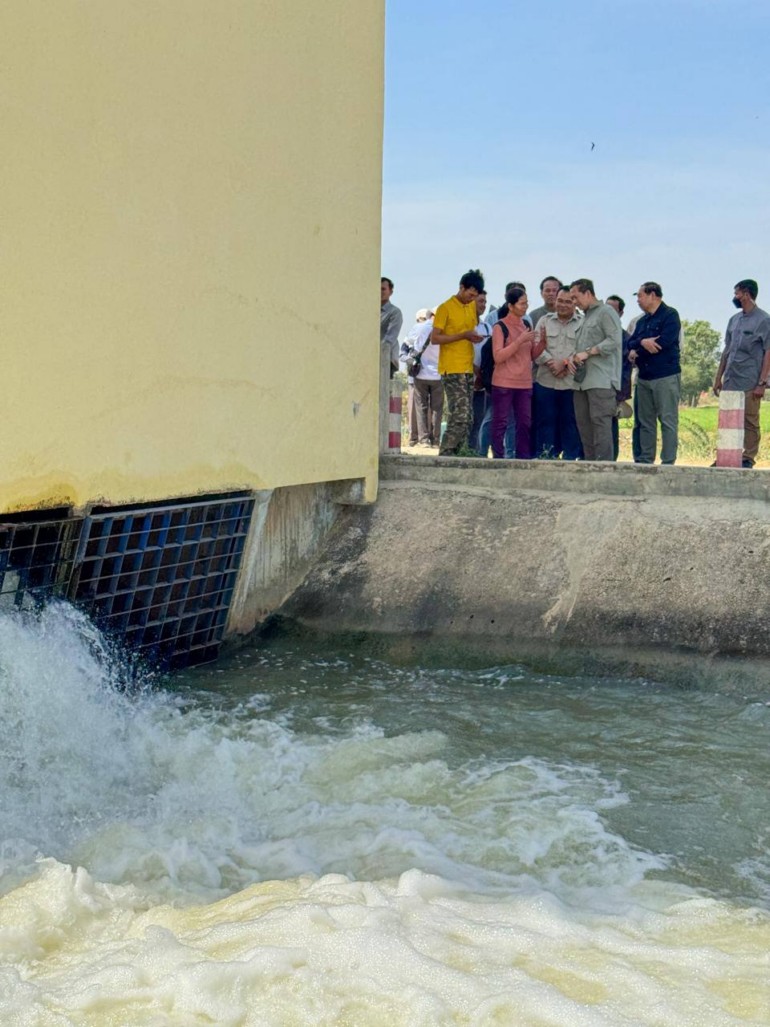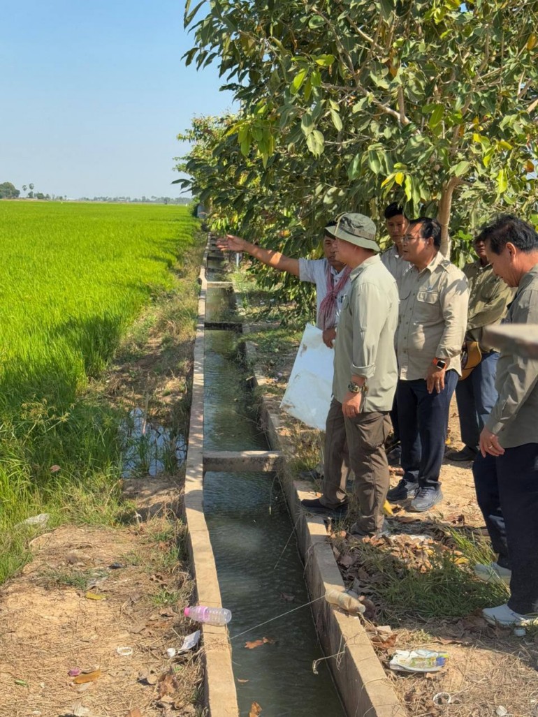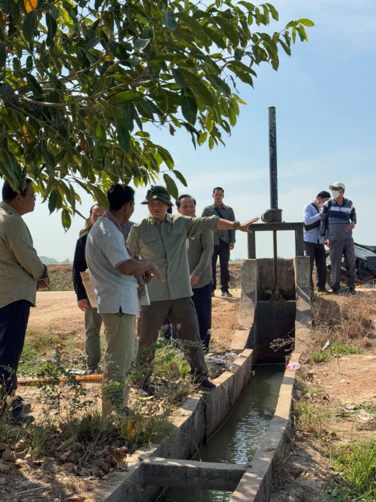 ព្រមជាមួយនេះ សម្តេចបវរធិបតី ហ៊ុន ម៉ាណែត ក៏បានឆ្លៀតចុះពិនិត្យប្រព័ន្ធធារាសាស្ត្រដែលជាប្រព័ន្ធមានលក្ខណ:ពេញលេញ ធានាការស្រោចស្រពពេញមួយឆ្នាំ ដែលមានការចងក្រងជាសហគមន៍ ដោយរៀបចំដោយនាយកដ្ឋានសហគមន៍កសិករប្រើប្រាស់ទឹក របស់ក្រសួងធនធានទឹក និងឧតុនិយម។ ជាលទ្ធផល ពួកគាត់អាចបង្កបង្កើនផលបីដងក្នុងមួយឆ្នាំ ដោយមិនមានការខ្វះខាតទឹក ទូទាំង ២,៥០០ហិកតា ហើយបាននឹងពង្រីកបន្ថែមចំនួនជាង ៥០០ហិកតា ទៀត ជាពិសេសក៏នៅមានសល់ទឹកអាចបូមអន្តរាគមន៍សង្គ្រោះស្រូវ ដែលនៅក្បែរនោះបានជិត ១ពាន់ហិកតា បន្ថែមផងដែរ។