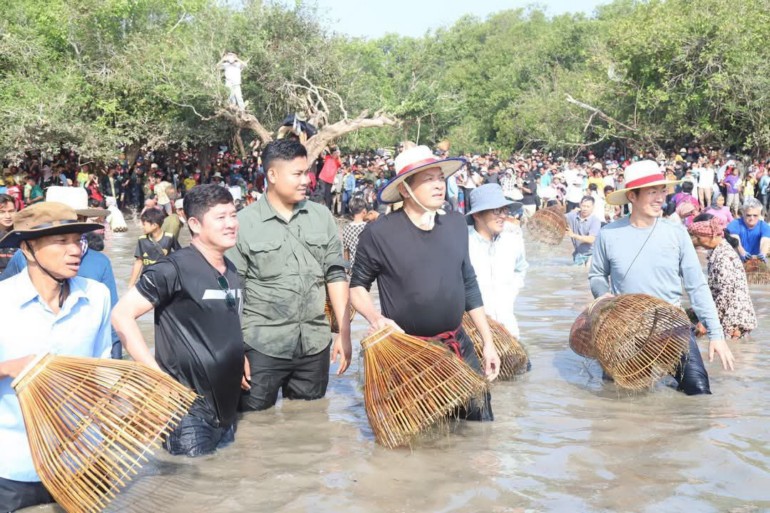 (ត្បូងឃ្មុំ): មិនខុសពីរៀងរាល់ឆ្នាំ រដ្ឋបាលខេត្តត្បូងឃ្មុំ បានរៀបចំព្រឹត្តិការណ៍ពិធីចាប់ត្រីបែបបុរាណ ជាទំនៀមទំលាប់បងប្អូនពលរដ្ឋ ពីដូនតាតជំនាន់រាប់រយឆ្នាំមកហើយ នៅភូមិសាទុំ ឃុំជាំក្រវៀន ស្រុកមេមត់។
