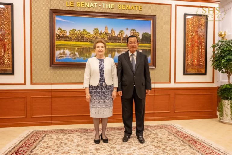 នាព្រឹកថ្ងៃពុធ ទី០៥ ខែកុម្ភៈ ឆ្នាំ២០២៥ សម្ដេចអគ្គមហាសេនាបតីតេជោហ៊ុន សែន ប្រធានព្រឹទ្ធសភានៃព្រះរាជាណាចក្រកម្ពុជា បានអនុញ្ញាតឱ្យលោកជំទាវ Marta Martrai អនុប្រធានទី១ រដ្ឋសភាហុងគ្រី និងគណៈប្រតិភូ ចូលជួបសម្តែងការគួរសម នៅវិមានព្រឹទ្ធសភា រាជធានីភ្នំពេញ។