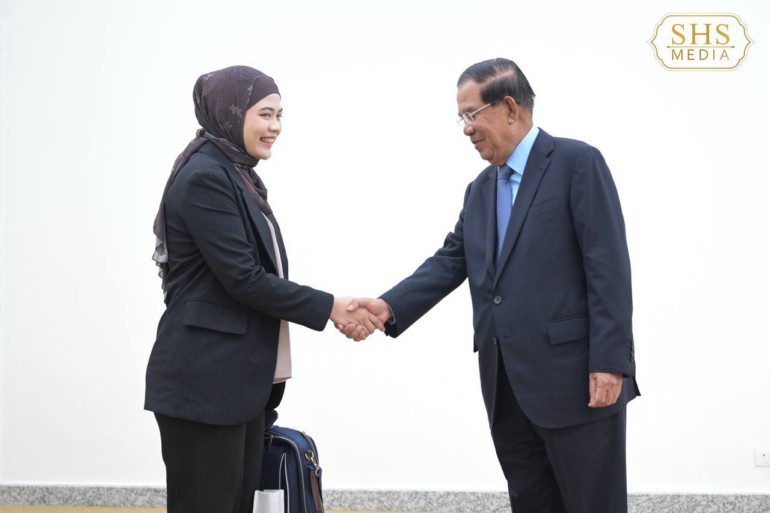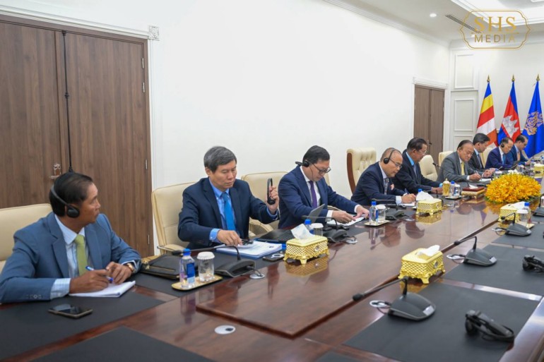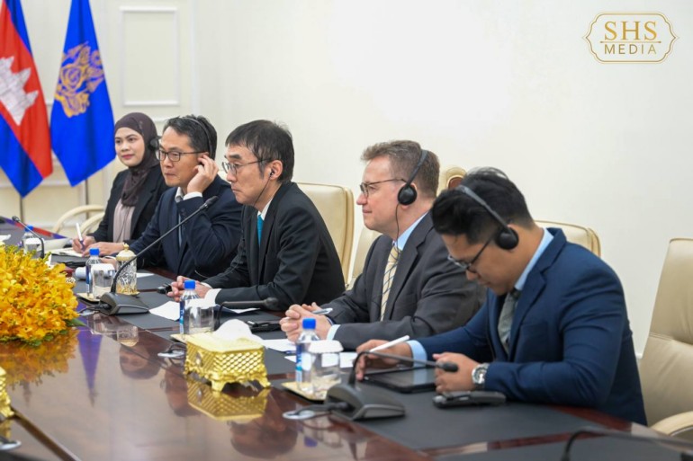 ជាកិច្ចចាប់ផ្តើម សម្តេចតេជោ បានសម្តែងនូវការស្វាគមន៍យ៉ាងកក់ក្តៅលោកសាស្ត្រាចារ្យ Tetsuya Watanabe និងសហការី ដែលបានចូលជួបសម្តែងការគួរសម និងពិភាក្សាអំពីការរៀបចំដំណើរទស្សនកិច្ចរបស់ សម្តេចតេជោ នៅសាធារណរដ្ឋឥណ្ឌូនេស៊ី ជាពិសេស ការៀបចំបាឋកថាគន្លឹះស្តីពីភាពជាអ្នកដឹកនាំ នៅវិទ្យាស្ថាន ERIA។ ជាមួយគ្នានេះ នៅដំណើរទស្សនកិច្ចខាងមុខនេះ សម្តេចតេជោ បានសម្តែងនូវក្តីរីករាយនឹងជួប ឯកឧត្តមប្រធានាធិបតី ឥណ្ឌូនេស៊ី Prabowo Subianto ដែលជាមិត្តចាស់ និង ទស្សនាអគ្គលេខាធិការដ្ឋានអាស៊ានផងដែរ។ សម្តេចតេជោ បានអបអរសាទរ សាលាសិក្សាស្តីពីរដ្ឋាភិបាលនៃវិទ្យាស្ថាន ERIA ដែលទើបសម្ពោធកាលពីពេលថ្មីៗ ក្នុងឆ្នាំ២០២៤ នៅរដ្ឋធានីហ្សាកាតា ប្រទេសឥណ្ឌូនេស៊ី និង សង្ឃឹមថាសាលាសិក្សាស្តីពីរដ្ឋាភិបាលនេះ នឹងសម្រេចបាននូវចក្ខុវិស័យរបស់ខ្លួន ដើម្បីជំរុញភាពជាអ្នកដឹកនាំ និងអភិបាលកិច្ចល្អ នៅក្នុងតំបន់អាស៊ាន។