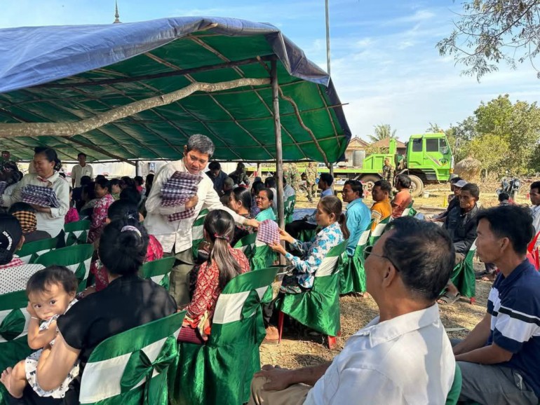 នាឱកាសនោះដែរ ឯកឧត្តមរដ្ឋលេខាធិការ បានជួបសំណេះសំណាល និងបានពាំនាំនូវប្រសាសន៍ផ្តាំផ្ញើ ការសាកសួរសុខទុក្ខ ប្រកបដោយមនោសញ្ចេតនា សេចក្តីនឹករលឹកយ៉ាងជ្រាលជ្រៅបំផុត និងពរសព្ទសាធុការពីសំណាក់ឯកឧត្តម ឆាយ ឫទ្ធិសែន រដ្ឋមន្ត្រីក្រសួងអភិវឌ្ឍន៍ជនបទ និងបានចែកជូនដល់លោកតា លោកយាយ អ៊ំ ពូ មីង បងប្អូនប្រជាពលរដ្ឋ និងអាជ្ញាធរមូលដ្ឋានដោយម្នាក់ៗទទួលបានក្រម៉ាចំនួនមួយ និងសិក្សានុសិស្សម្នាក់ៗទទួលបានថវិកា ៥០០០៛។