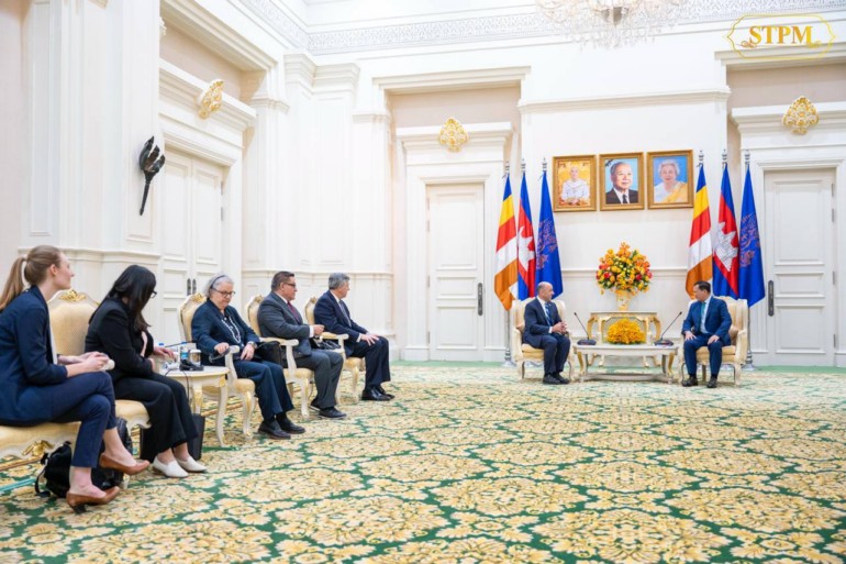 នារសៀលថ្ងៃទី១៧ ខែកុម្ភៈ ឆ្នាំ២០២៥, សម្ដេចមហាបវរធិបតី ហ៊ុន ម៉ាណែត នាយករដ្ឋមន្ត្រីនៃព្រះរាជាណាចក្រកម្ពុជា បានអនុញ្ញាតឱ្យគណៈប្រតិភូសភាសហរដ្ឋអាមេរិក ដែលរួមមានឯកឧត្តម Jimmy Panetta សមាជិកសភាប្រចាំរដ្ឋកាលីហ្វ័រញ៉ា មកពីគណបក្សប្រជាធិបតេយ្យ, ឯកឧត្តម Salud Carbajal សមាជិកសភាប្រចាំរដ្ឋកាលីហ្វ័រញ៉ា មកពីគណបក្សប្រជាធិបតេយ្យ, ឯកឧត្តម Darin Lahood សមាជិកសភាប្រចាំរដ្ឋអ៉ីលីណយ មកពីគណបក្សសាធារណរដ្ឋ និងសហការី ចូលជួបសម្ដែងការគួរសម និងពិភាក្សាការងារនៅវិមានសន្ដិភាព។
