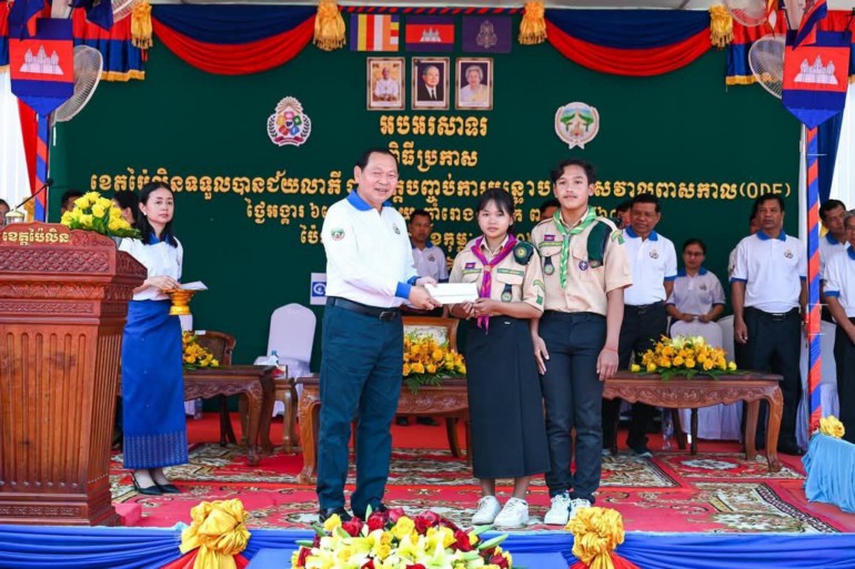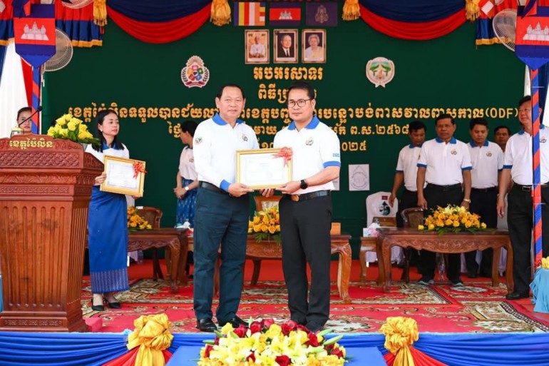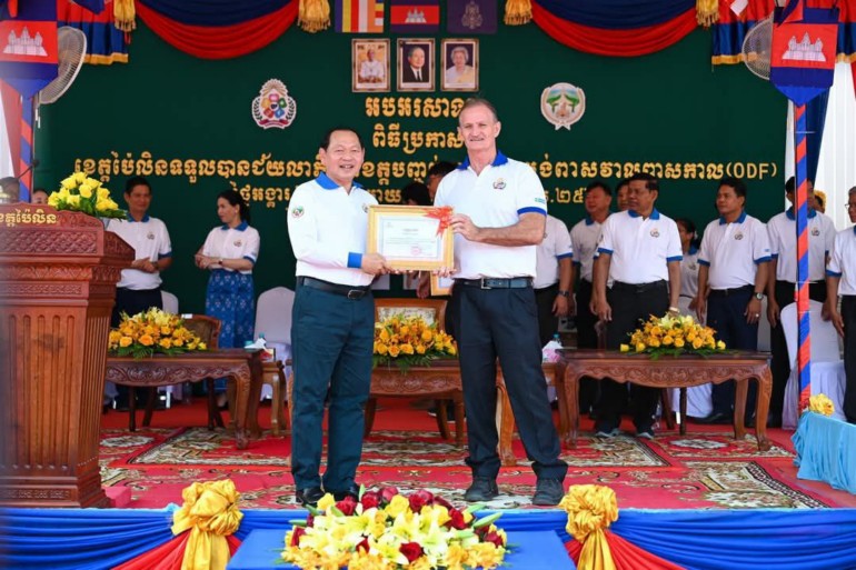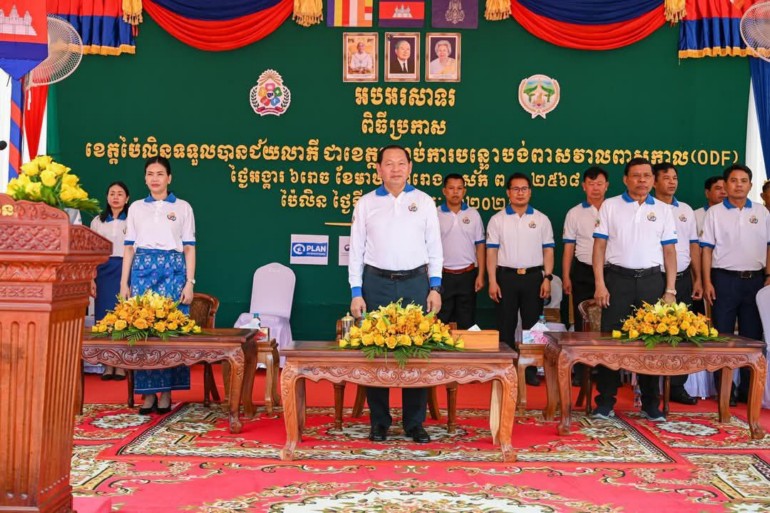 ខេត្តប៉ៃលិន៖ នាព្រឹកថ្ងៃអង្គារ ៦រោច ខែមាឃ ឆ្នាំរោង ឆស័ក ព.ស.២៥៦៨ ត្រូវនឹងថ្ងៃទី១៨ ខែកុម្ភៈ ឆ្នាំ២០២៥ នៅទីធ្លាស្នងការនគរបាលខេត្តប៉ៃលិន ឯកឧត្តម ឆាយ ឫទ្ធិសែន រដ្ឋមន្ត្រីក្រសួងអភិវឌ្ឍន៍ជនបទ បានអញ្ជើញជាអធិបតីភាពដ៏ខ្ពង់ខ្ពស់ក្នុងពីធីប្រកាសទទួលស្គាល់ខេត្តប៉ៃលិនជាខេត្តទី១៦ ដែលទទួលបានជ័យលាភីបញ្ចប់ការបន្ទោបង់ពាសវាលពាសកាល (ODF) ដែលមានអ្នកអញ្ជើញចូលរួម សរុបប្រមាណ ១ ៤៣០នាក់។