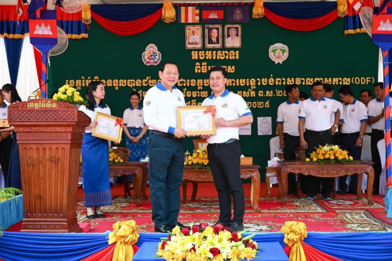 សូមជម្រាបជូនផងដែរថា៖ គិតត្រឹមថ្ងៃនេះ មានរាជធានី ខេត្តចំនួន ១៦ហើយ ដែលសម្រេចបានជារាជធានី-ខេត្ត បញ្ចប់ការបន្ទោបង់ពាសវាលពាសកាល (ODF+និង ODF) រួមមាន៖ រាជធានីភ្នំពេញ ខេត្តស្វាយរៀង ព្រៃវែង កណ្តាល កំពង់ស្ពឺ កំពង់ឆ្នាំង កែប ព្រះសីហនុ កំពង់ចាម រតនគីរី សៀមរាប ត្បូងឃ្មុំ តាកែវ ខេត្តស្ទឹងត្រែង កំពង់ធំ និងខេត្តប៉ៃលិន៕