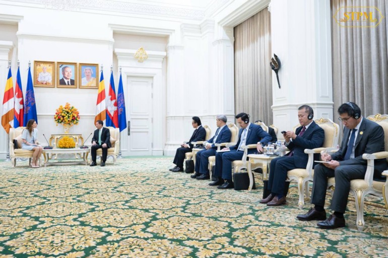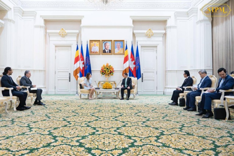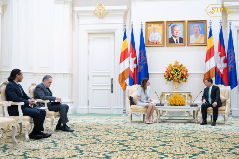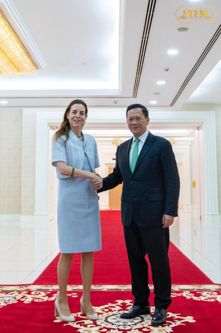 រាជធានីភ្នំពេញ ៖ នាព្រឹកថ្ងៃទី២០ ខែកុម្ភៈ ឆ្នាំ២០២៥, សម្ដេចមហាបវរធិបតី ហ៊ុន ម៉ាណែត នាយករដ្ឋមន្ត្រីនៃព្រះរាជាណាចក្រកម្ពុជា បានអនុញ្ញាតឱ្យលោកជំទាវ Orna SAGIV ឯកអគ្គរដ្ឋទូតអ៉ីស្រាអែលប្រចាំកម្ពុជា ដែលមាននិវេសនដ្ឋាននៅទីក្រុងបាងកក ចូលជួបសម្ដែងការគួរសម និងពិភាក្សាការងារ នៅវិមានសន្ដិភាព។