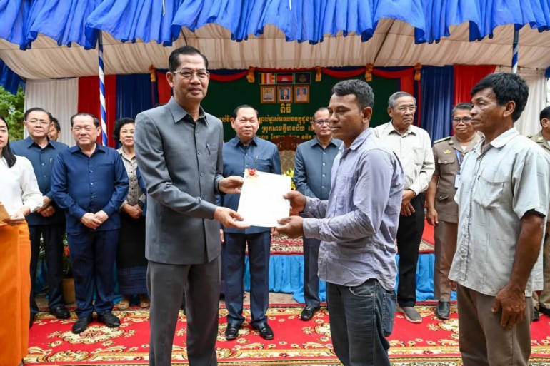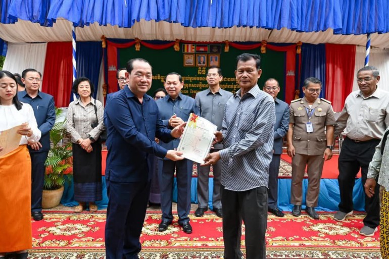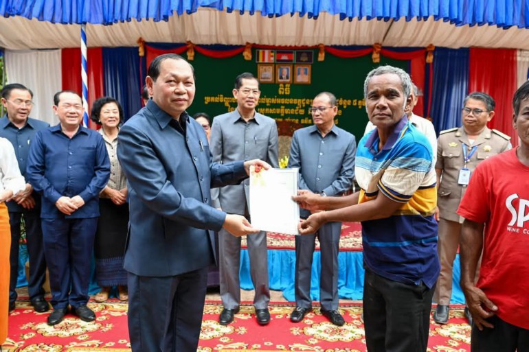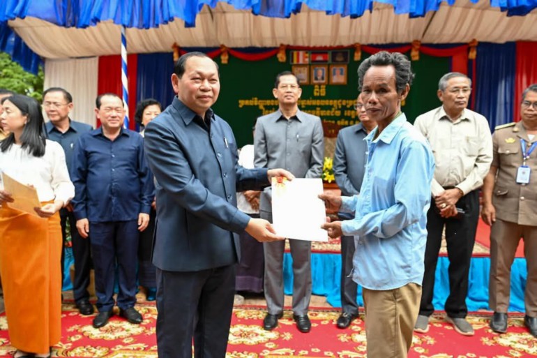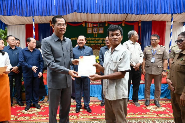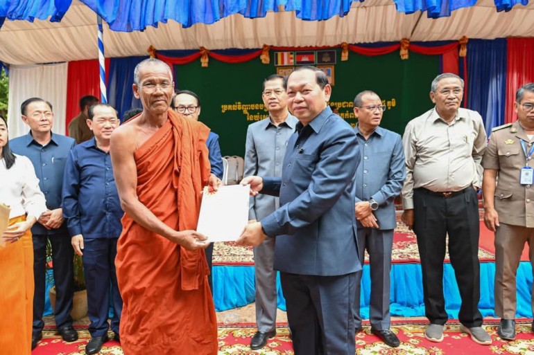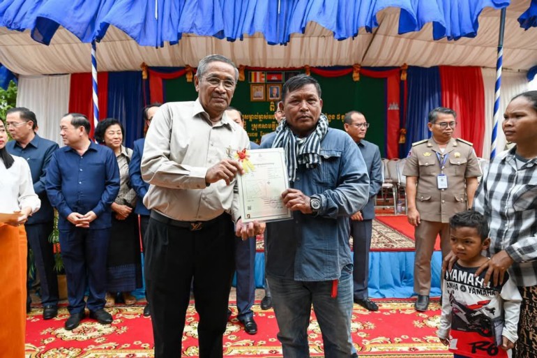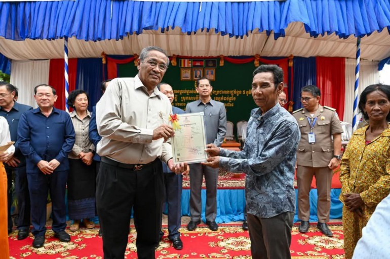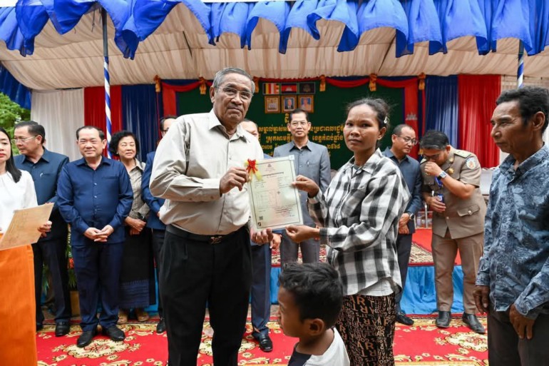 ខេត្តកំពង់ឆ្នាំង៖ នាព្រឹកថ្ងៃចន្ទ ១២រោច ខែមាឃ ឆ្នាំរោង ឆស័ក ព.ស.២៥៦៨ ត្រូវនឹងថ្ងៃទី២៤ ខែកុម្ភៈ ឆ្នាំ២០២៥ ឯកឧត្តម ឆាយ ឫទ្ធិសែន រដ្ឋមន្ត្រីក្រសួងអភិវឌ្ឍន៍ជនបទ អនុប្រធានទី១ ក្រុមការងាររាជរដ្ឋាភិបាលចុះមូលដ្ឋានខេត្តកំពង់ឆ្នាំង និងជាប្រធានក្រុមការងាររាជរដ្ឋាភិបាលចុះមូលដ្ឋានស្រុកសាមគ្គីមានជ័យ និងស្រុកទឹកផុស បានអញ្ជើញជាអធិបតីក្នុងពិធីប្រគល់វិញ្ញាបនបត្រសម្គាល់ម្ចាស់អចលនវត្ថុ ចំនួន ៩ ៨២៥បណ្ណ ជូនប្រជាពលរដ្ឋចំនួន ៤ ១៩៩ គ្រួសារ នៅក្នុងឃុំសេដ្ឋី ស្រុកសាមគ្គីមានជ័យ ខេត្តកំពង់ឆ្នាំង។ ក្នុងពិធីនេះ មានការអញ្ជើញចូលរួមពី ឯកឧត្តម លោកជំទាវ ក្រុមការងាររាជរដ្ឋាភិបាលចុះមូលដ្ឋានស្រុកសាមគ្គីមានជ័យ ឯកឧត្តម តំណាងក្រសួងរៀបចំដែនដី នគរូបនីយកម្ម និងសំណង់, ឯកឧត្តម អភិបាលនៃគណៈអភិបាលខេត្តកំពង់ឆ្នាំង, មន្ត្រីរាជការ អាជ្ញាធរគ្រប់លំដាប់ថ្នាក់ និងបងប្អូនប្រជាពលរដ្ឋសរុបចំនួន ៦៥៧នាក់។
