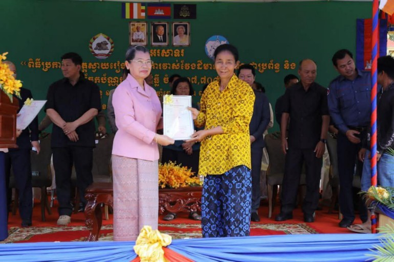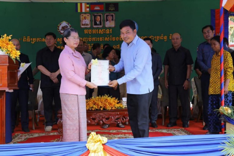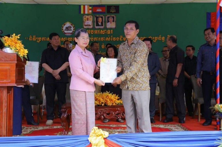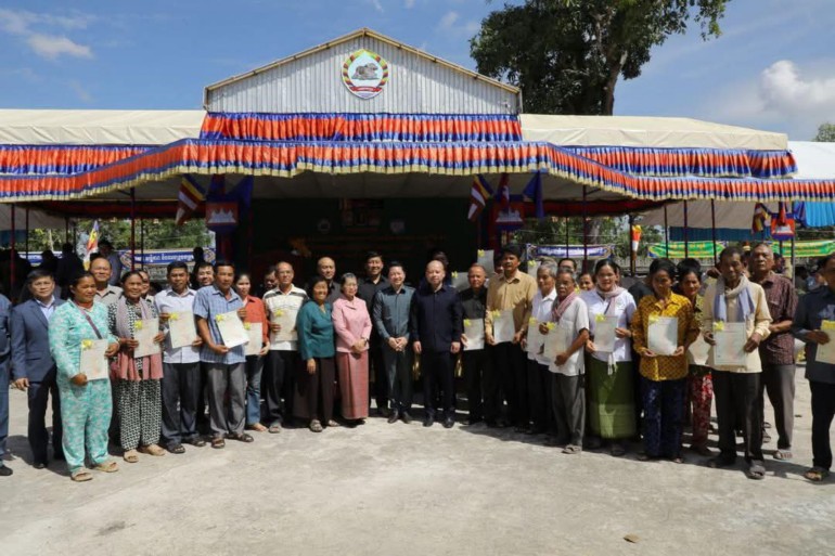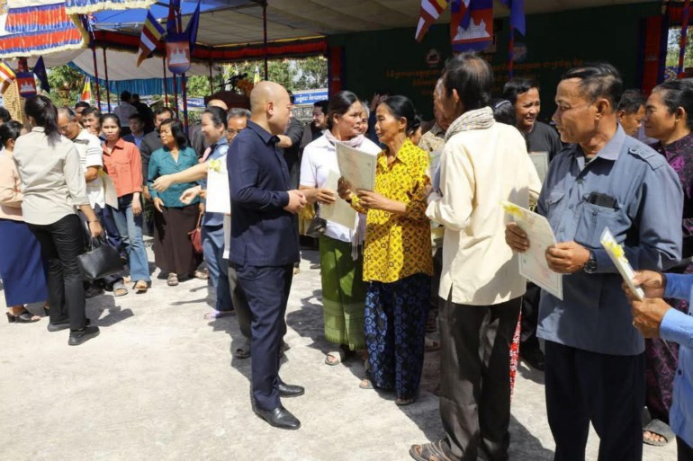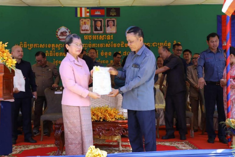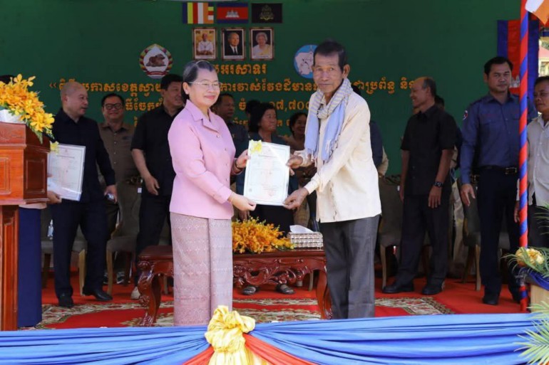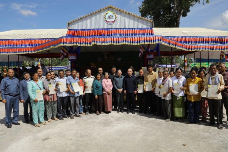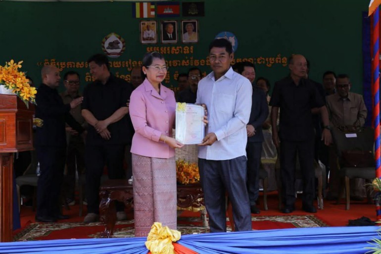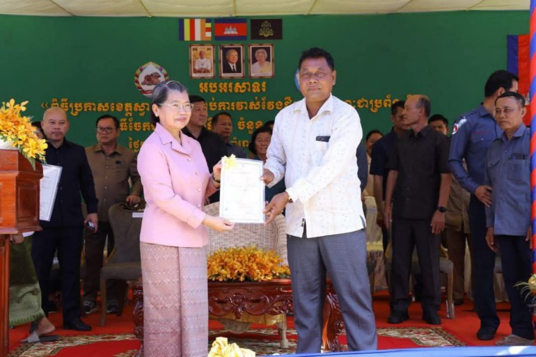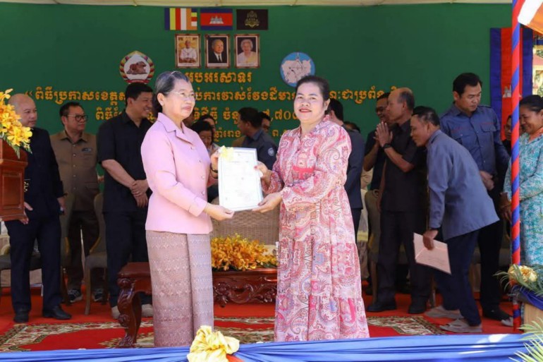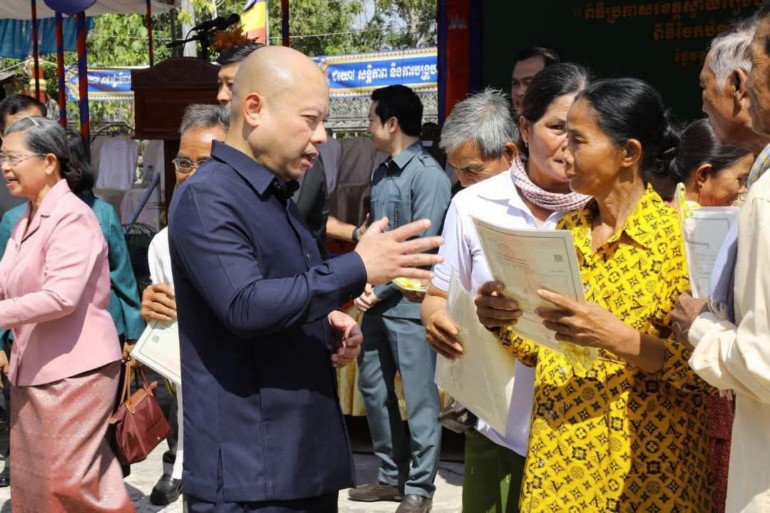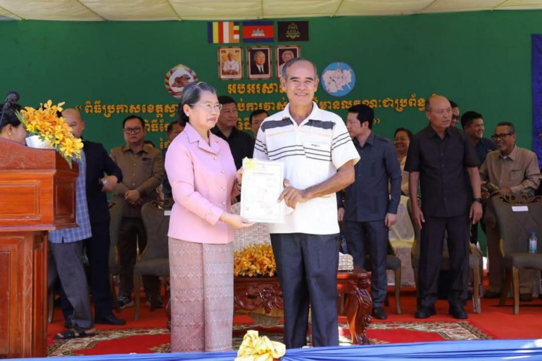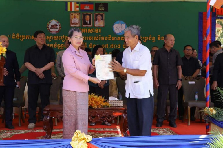 សម្តេចកិត្តិសង្គហបណ្ឌិត ម៉ែន សំអន ឧត្តមប្រឹក្សាផ្ទាល់ព្រះមហាក្សត្រ បានអញ្ជើញជាអធិបតីក្នុងពិធីប្រកាសខេត្តស្វាយរៀង បញ្ចប់ការវាស់វែងដីធ្លីមានលក្ខណៈជាប្រព័ន្ធ និងពិធីចែកបណ្ណកម្មសិទ្ធដីធ្លីចំនួន ១៧.៧០៨បណ្ណ ជូនប្រជាពលរដ្ឋ នៅវត្តបុសមនលើ ស្ថិតក្នុងឃុំបុសមន ស្រុករំដួល ខេត្តស្វាយរវៀង នាព្រឹកថ្ងៃចន្ទ ១២រោច ខែមាឃ ឆ្នាំរោង ឆស័ក ព.ស.២៥៦៨ ត្រូវនឹង ថ្ងៃទី២៤ ខែកុម្ភៈ ឆ្នាំ២០២៥។