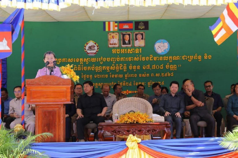 សម្តេចក៏បានបន្តទៀតថា ការបញ្ចប់ការវាស់វែងដីធ្លី មានលក្ខណៈជាប្រព័ន្ធនឹង បម្រើឧត្តមប្រយោជន៍ របស់ប្រជាជនគ្រប់រូប និងតជំនាន់ ជាមួយគ្នានេះវាជាមូលដ្ឋាន ច្បាប់ដ៏រឹងមាំ ដែលនឹងចូលរួមកាត់បន្ថយ និងបញ្ចប់វិវាទទាំងឡាយ និងចូលរួមបង្កើត បរិយាកាសគ្មានវិវាទសម្រាប់សង្គមជាតិ ដែលជាឫសកែវនៃសុខសន្តិភាព។ ម្យ៉ាងវិញទៀត ការបញ្ចប់ការវាស់វែងដីធ្លី នឹងអនុញ្ញាតឱ្យខេត្តរៀបចំប្លង់ព្រំប្រទល់រដ្ឋបាល និងនាមភូមិសាស្ត្រ ប្លង់ហេដ្ឋារចនាសម្ព័ន្ធ និងទីធ្លាសាធារណៈ ប្លង់គោលប្រើប្រាស់ដីធ្លី និងពង្រីក កំណើនជីវភាពប្រជាពលរដ្ឋ ឱ្យកាន់តែប្រសើរឡើង៕