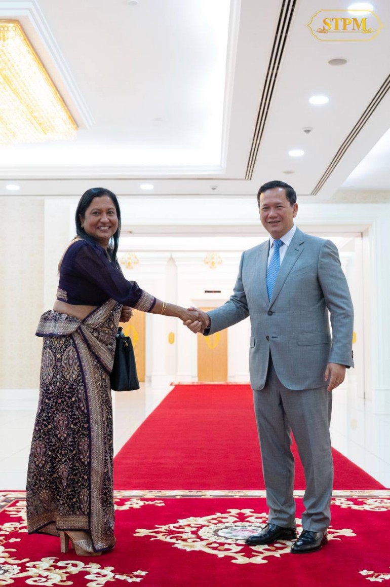 នាព្រឹកថ្ងៃទី២៦ ខែកុម្ភៈ ឆ្នាំ២០២៥, សម្ដេចមហាបវរធិបតី ហ៊ុន ម៉ាណែត នាយករដ្ឋមន្ត្រីនៃព្រះរាជាណាចក្រកម្ពុជា បានអនុញ្ញាតឱ្យលោកជំទាវ វីចាយ៉ានធី អេឌីរីស៊ីងហេ(Wijayanthi Edirisinghe), ឯកអគ្គរដ្ឋទូតវិសាមញ្ញ និង ពេញសមត្ថភាព នៃសាធារណរដ្ឋសង្គមនិយមប្រជាធិបតេយ្យ ស្រីលង្កា ប្រចាំព្រះរាជាណាចក្រកម្ពុជា ដែលមាននិវេសនដ្ឋាននៅទីក្រុងបាងកក ចូលជួបសម្ដែងការគួរសម នៅវិមានសន្ដិភាព។