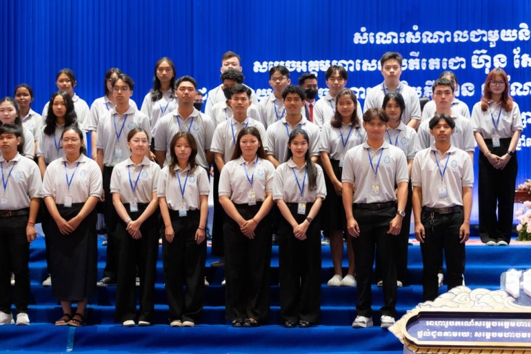 នាព្រឹកថ្ងៃទី២៨ ខែកុម្ភៈ ឆ្នាំ២០២៥ លោកជំទាវបណ្ឌិត ពេជ ចន្ទមុន្នី ហ៊ុនម៉ាណែត បានអញ្ជើញជាអធិបតី ក្នុងពិធីសំណេះសំណាលជាមួយនិស្សិតជយលាភីអាហារូបករណ៍ សម្តេចអគ្គមហាសេនាបតីតេជោ ហ៊ុន សែន និងសម្ដេចកិត្តិព្រឹទ្ធបណ្ឌិត (អ.ម.ត) ផ្តល់ជូនតាមរយៈ សម្តេចមហាបវរធិបតី ហ៊ុន ម៉ាណែត និងលោកជំទាវបណ្ឌិត សម្រាប់ឆ្នាំសិក្សា ២០២៤-២០២៥ នៅមជ្ឈមណ្ឌលសន្និបាត និងពិព័ណ៌កោះពេជ្រ។