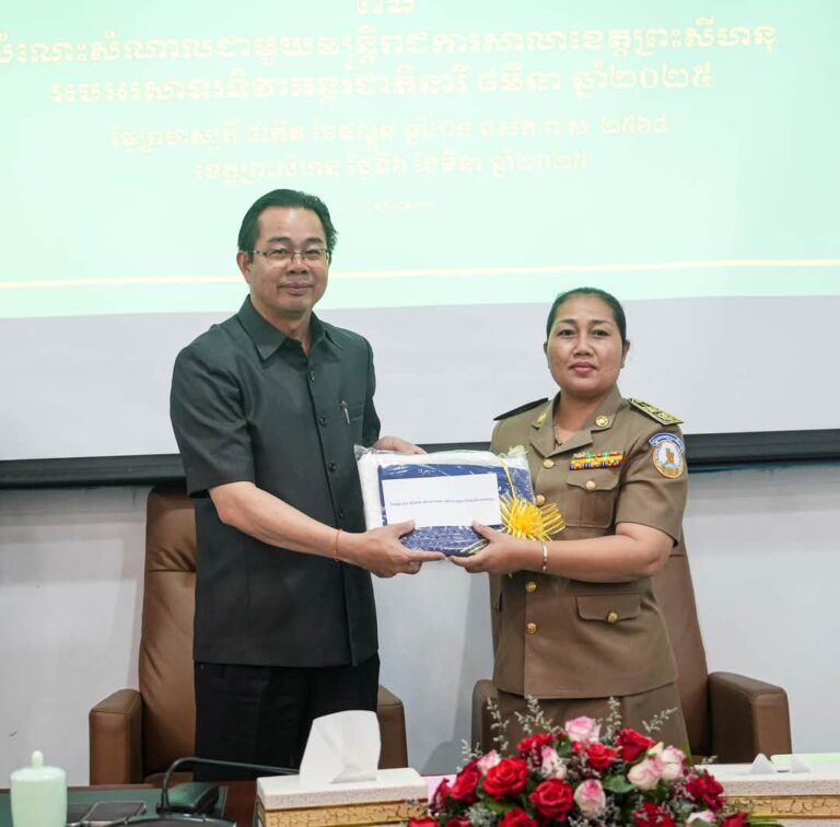 (ព្រះសីហនុ)៖ នារសៀលថ្ងៃទី០៦ ខែមីនា ឆ្នាំ២០២៥នេះ ឯកឧត្តម ម៉ាង សុីណេត អភិបាល នៃគណ:អភិបាលខេត្តព្រះសីហនុ និង ឯកឧត្តម វង្ស ផាណាត ប្រធានក្រុមប្រឹក្សាខេត្ត បានអញ្ជើញជាអធិបតីក្នុងពិធីអបអរសាទរទិវាអន្តរជាតិនារី ៨មីនា ខួបលើកទី១១៤ ក្រោមប្រធានបទ «សិទ្ធិ សមភាព និងភាពអង់អាចចំពោះស្ត្រី និក្មេងស្រីគ្រប់រូប»។