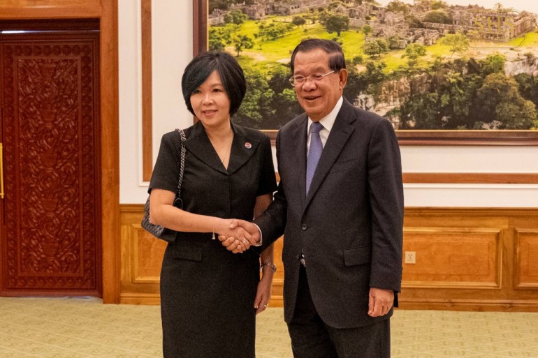 ជាកិច្ចឆ្លើយតប សម្ដេចតេជោ ប្រមុខរដ្ឋស្ដីទី បានសំដែងនូវការរីករាយស្វាគមន៍ចំពោះ លោកជំទាវ ឯកអគ្គរដ្ឋទូតសិង្ហបុរី សាជាថ្មីម្ដងទៀត បន្ទាប់ជំនួបលើកទី១ រវាងសម្ដេច និងលោកជំទាវ នៅឆ្នាំ២០២១ ក្នុងឋានៈសម្ដេចជានាយករដ្ឋមន្ត្រីនាពេលនោះ។ ជាមួយគ្នានេះដែរ សម្ដេចតេជោបានរំលេចអំពីបញ្ហាមួយចំនួនដែលកើតឡើងនៅក្នុងតំបន់ក៏ដូចជាពិភពលោកទាំងមូលផងដែរ ជាពិសេសបញ្ហាសង្គ្រាមពាណិជ្ជកម្មដែលបាននិងកំពុងកើតឡើងក្នុងពេលបច្ចុប្បន្ននេះ ដែលទាមទារឱ្យប្រទេសយើងទាំងពីរ កម្ពុជា និងសិង្ហបុរី ត្រូវពង្រឹងកិច្ចសហប្រតិបត្តិការបន្ថែមទៀត។