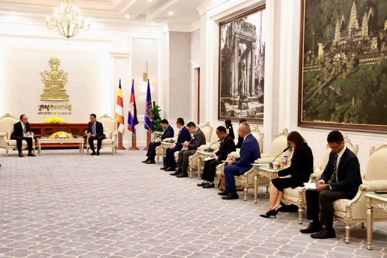 ក្នុងឱកាសអនុញ្ញាតជូនឯកឧត្តម Pablo Kang ភារធារីស្ថានទូតអូស្ត្រាលី ប្រចាំព្រះរាជាណាចក្រកម្ពុជា ចូលជួបសម្ដែងការគួរសម និងពិភាក្សាការងារ នាព្រឹកថ្ងៃទី២ ខែឧសភា ឆ្នាំ២០២៤ ឯកឧត្តមអភិសនិ្តបណ្ឌិត ស សុខា ឧបនាយករដ្ឋមន្ត្រី រដ្ឋមន្ត្រីក្រសួងមហាផ្ទៃ បានថ្លែងអំណរគុណក្រសួងមហាផ្ទៃអូស្ត្រាលី ដែលបានអញ្ជើញឯកឧត្តម ដឹកនាំគណៈប្រតិភូក្រសួងមហាផ្ទៃកម្ពុជា ទស្សនកិច្ចសិក្សានៅប្រទេសអូស្ត្រាលី នាខែមិថុនា ឆ្នាំ២០២៤ ខាងមុខនេះ។