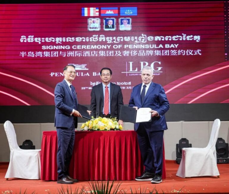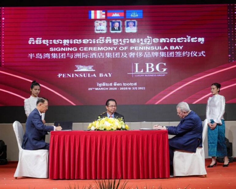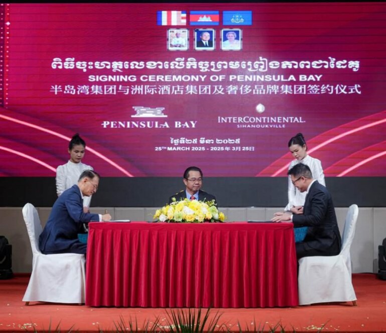 (ព្រះសីហនុ) ៖ នាព្រឹកថ្ងៃទី២៥ ខែមីនា ឆ្នាំ២០២៥ ឯកឧត្តម ម៉ាង ស៊ីណេត អភិបាល នៃគណៈអភិបាលខេត្តព្រះសីហនុ បានអញ្ជើញជាអធិបតីក្នុងពីធីចុះហត្ថលេខាលើកិច្ចព្រមព្រៀងភាពជាដៃគូវាងក្រុមហ៊ុន Peninsula Bay ខេត្តព្រះសីហនុ ជាមួយក្រុមហ៊ុន Intercontinental (IHG) និងក្រុមហ៊ុន Luxury Business Group (LBG) នៅសណ្ឋាគារស៊ីហ៊ូ ស្ថិតនៅភូមិ១ សង្កាត់លេខ៣ ក្រុងព្រះសីហនុ។