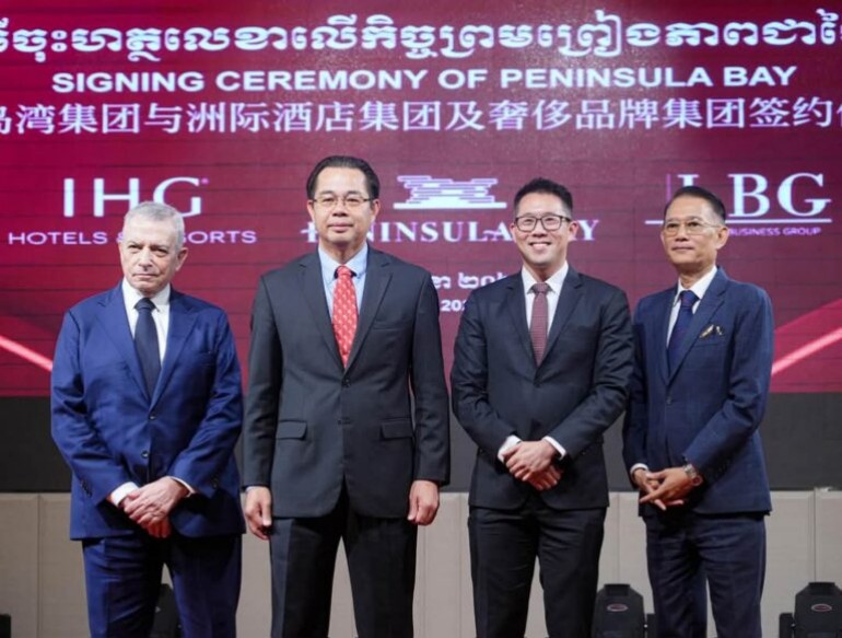 លោក អេតឌី ឈ័រ Eddie Chua នាយកប្រតិបត្តិក្រុមហ៊ុន Peninsula Bay មានប្រសាសន៍ស្វាគមន៍ថា ក្រុមហ៊ុន Peninsula Bay បានចាប់ដៃគូរជាមួយក្រុមហ៊ុនសណ្ឋាគារ IHG និងក្រុមហ៊ុន Luxury Business (LBG) ដើម្បីលើកកម្ពស់វិស័យទេសចរណ៍នៅកម្ពុជា ផ្តល់សេវាកម្មបដិសណ្ឋាកិច្ចកម្រិតសកល និងលក់រាយខ្នាតយក្ស ក្រុមហ៊ុនបានសហការគ្នាបោះទីតាំង ដើម្បីអភិវឌ្ឍន៍ភាពចម្រុះជូនភ្ញៀវទេសចរណ៍ ក៏ដូចជាការលើកកម្ពស់មុខមាត់ខេត្តព្រះសីហនុ ទៅជាគោលដៅទេសចរណ៍ដ៏សំខាន់នៅអាស៊ីអាគ្នេយ៍ ដែលជាសញ្ញាណបង្ហាញពីការងើបឡើងវិញ នៃវិស័យទេសចរណ៍ កម្រិតជីវភាពក្នុងតំបន់ និងជាកិត្យានុភាពរបស់ខេត្តព្រះសីហនុ ភាពជាដៃគូជាមួយក្រុមហ៊ុន IHG និងក្រុមហ៊ុន LBG បានផ្តល់ឱ្យយើងទទួលបាននូវបទពិសោធន៍ដែលមិនអាចប្រៀបផ្ទឹមបាន នៅក្នុងផ្នែកបដិសណ្ឋារកិច្ច និងការលក់រាយ ការវិវឌ្ឍន៍នេះ គឺជាសក្ខីភាពបង្ហាញពីចក្ខុវិស័យរបស់យើងក្នុងការច្របាច់បញ្ចូលគ្នានូវភាពប្រណីត នវានុវត្តិន៍ និងសម្បត្តិធម្មជាតិដ៏ស្រស់ស្អាតរបស់ប្រទេសកម្ពុជា ពិសេសខេត្តព្រះសីហនុ ជាគោលដៅថ្មីមិនធ្លាប់មានក្នុងប្រទេសដ៏ទៃ។ ចក្ខុវិស័យសម្រាប់ការអភិវឌ្ឍន៍នាពេលអនាគត Peninsula Bay គឺជាក្រុមហ៊ុនអភិវឌ្ឍន៍លើវិស័យសណ្ឋាគារ ការលក់រាយ និងការកម្សាន្ត។