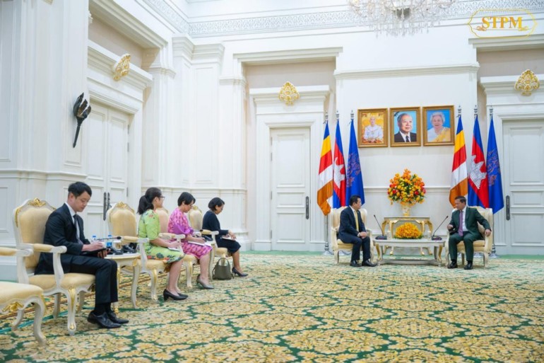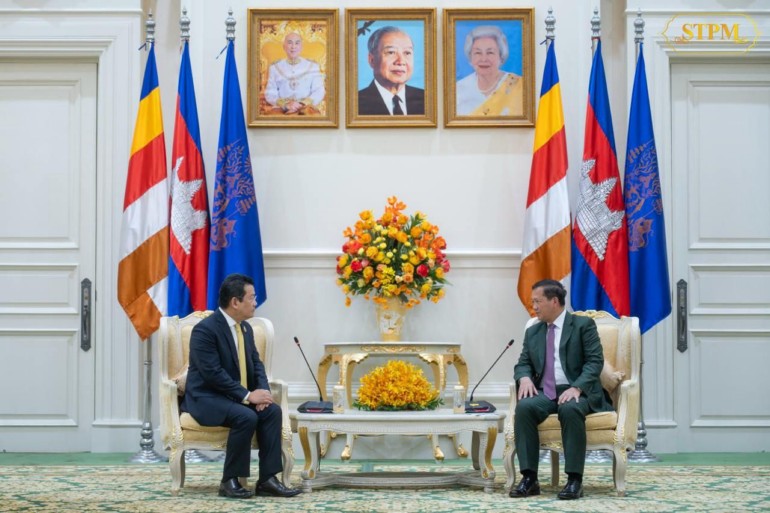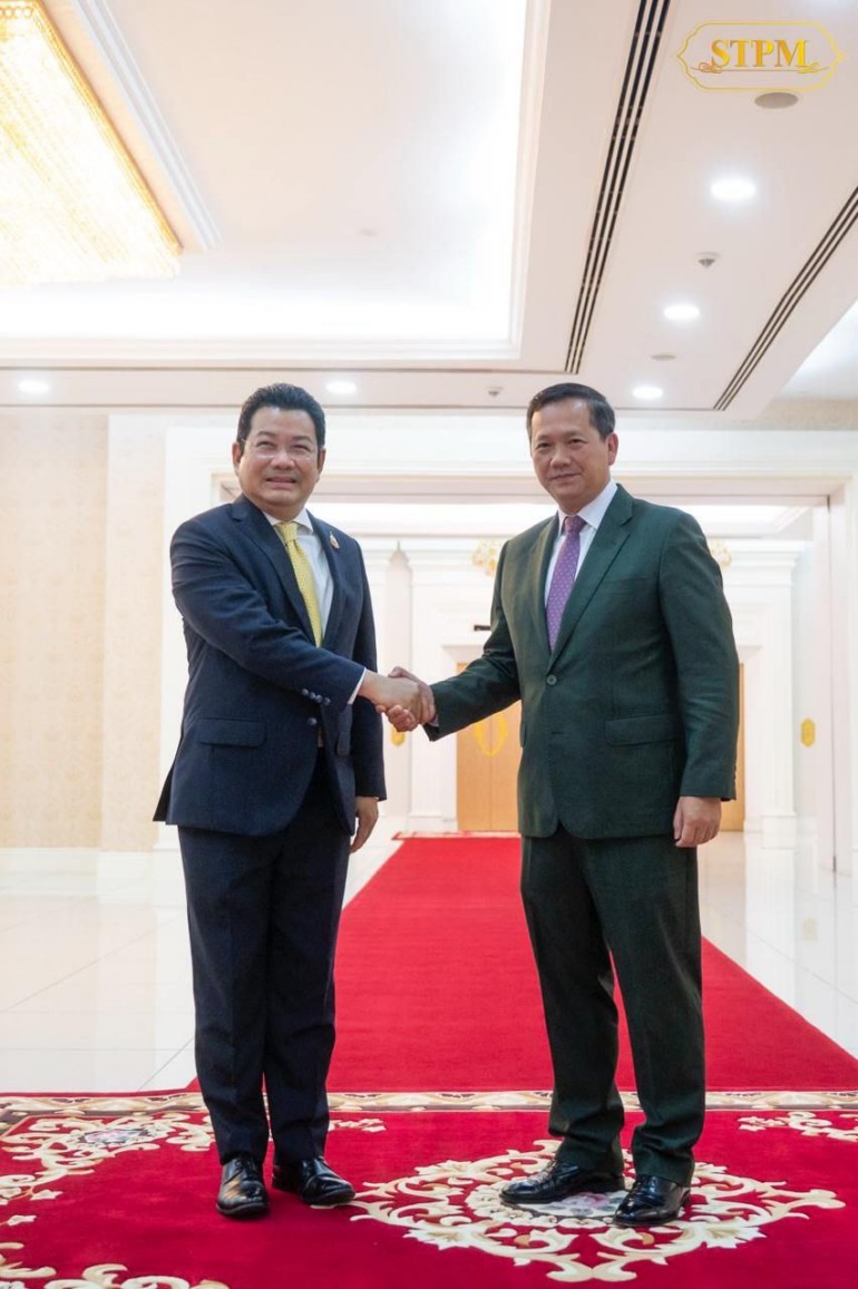 នារសៀលថ្ងៃទី១០ ខែមេសា ឆ្នាំ២០២៥, សម្ដេចមហាបវរធិបតី ហ៊ុន ម៉ាណែត នាយករដ្ឋមន្ត្រីនៃព្រះរាជាណាចក្រកម្ពុជា បានទទួលជួបសម្តែងការគួរសម និងពិភាក្សាការងារជាមួយ ឯកឧត្តម Tull TRAISORAT ឯកអគ្គរាជទូតព្រះរាជាណាចក្រថៃថ្មីប្រចាំព្រះរាជាណាចក្រកម្ពុជា នៅវិមានសន្តិភាព។