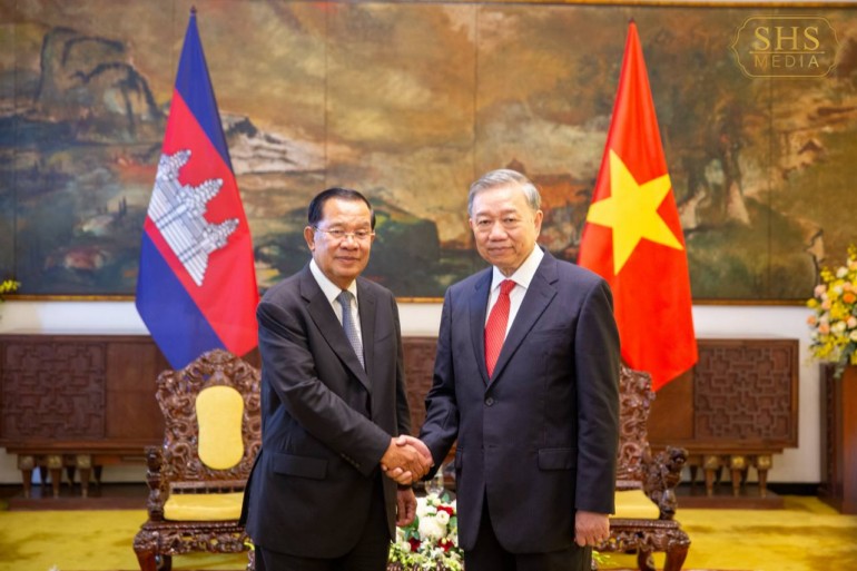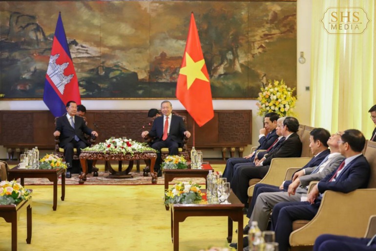 នៅរសៀលថ្ងៃទី២៩ ខែមេសា ឆ្នាំ២០២៥ សម្តេចអគ្គមហាសេនាបតីតេជោ ហ៊ុន សែន ប្រធានព្រឹទ្ធសភា នៃព្រះរាជាណាចក្រកម្ពុជា និងជាប្រធានគណបក្សប្រជាជនកម្ពុជា បានអញ្ជើញ ជួបសំដែងការគួរសម និងពិភាក្សាការងារជាមួយ ឯកឧត្តម តូ ឡឹម អគ្គលេខាមជ្ឈិមបក្សកុម្មុយនីស្តវៀតណាម ក្នុងឱកាសសម្ដេចតេជោ និងគណៈប្រតិភូចូលរួមពិធីអបអរសាទរខួប៥០ឆ្នាំនៃទិវារំដោះភាគខាងត្បូង និងការបង្រួបបង្រួមជាតិវៀតណាម នៅទីក្រុងហូជីមិញ។