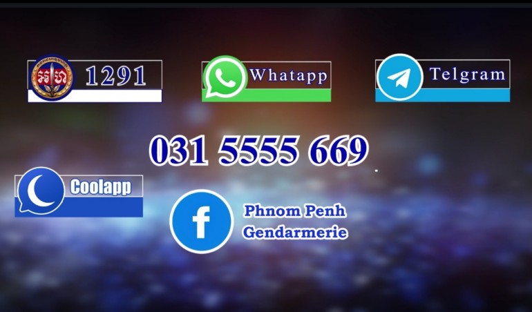 បើសិនជាបងប្អូនប្រជាពលរដ្ឋ នៅក្នុងរាជធានីភ្នំពេញ បានជួបហេតុការណ៍ត្រូវការអន្តរាគមន៍បន្ទាន់ ពីកងរាជអាវុធហត្ថរាជធានីភ្នំពេញ សូមបងប្អូនហៅទូរស័ព្ទទៅកាន់លេខ១២៩១ ឬ អាចទាក់ទងតាមបណ្តាញ Telegram, WhatsApp, CoolApp របស់កងរាជអាវុធហត្ថរាជធានីភ្នំពេញ ដែលមានលេខ 031 5555 669 ឬអាចឆាតទៅកាន់ផេកហ្វេសប៊ុករបស់កងរាជអាវុធហត្ថរាជធានីភ្នំពេញ ដែលមានឈ្មោះថា Phnom Penh Gendarmerie។