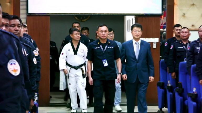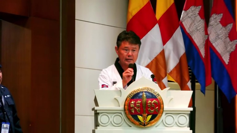 ជាចុងក្រោយ លោកឧត្តមសេនីយ៍ឯក រ័ត្ន ស្រ៊ាង ក៏បានថ្លែងអំណរគុណយ៉ាងជ្រាលជ្រៅបំផុត ចំពោះកិច្ចសហប្រតិបត្តិការដ៏ល្អរបស់ភាគីកូរ៉េខាងត្បូង ដែលតែងតែបានជួយជ្រោមជ្រែងផ្តល់គ្រូបង្វឹកក្បាច់គុនតេក្វាន់ដូ រួមទាំងសម្ភារៈជាច្រើនទៀត ក្នុងការបណ្ដុះបណ្ដាលយ៉ាងយកចិត្តទុកដាក់ដល់ក្រុមគ្រូបង្គោលអាវុធហត្ថរាជធានីភ្នំពេញ នាពេលកន្លងមក ក៏ដូចជាការប្រគល់វិញ្ញាបនបត្រជាន់ខ្ពស់ បញ្ជាក់កម្រិតខ្សែក្រវាត់ខ្មៅថ្នាក់ ៦ដាន់ ជូនដល់លោកក្នុងថ្ងៃនេះផងដែរ។ លោកឧត្តមសេនីយ៍ឯកបញ្ជាក់ថា ការបណ្ដុះបណ្ដាលក្រុមគ្រូបង្គោលកន្លងមកនេះ គឺបានផ្តល់នូវបច្ចេកទេស បទពិសោធន៍ ចំណេះជំនាញថ្មីៗ សម្រាប់យកទៅបង្ហាត់បន្តដល់កម្លាំងអាវុធហត្ថរាជធានីភ្នំពេញ ក្នុងទីបញ្ជាការ ក៏ដូចជាកម្លាំងនៅតាមបណ្ដាលមូលដ្ឋានអាវុធហត្ថខណ្ឌទាំង១៤ ដើម្បីជួយឲ្យកាយសម្បទារឹងមាំរហ័សរហួនក្នុងកិច្ចប្រតិបត្តិការបង្ក្រាបបទល្មើសផ្សេងៗ អោយកាន់តែមានប្រសិទ្ធភាពខ្ពស់បន្ថែមទៀត៕
