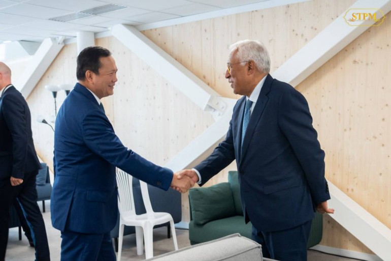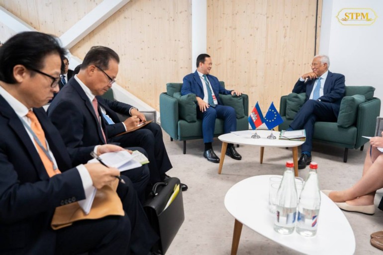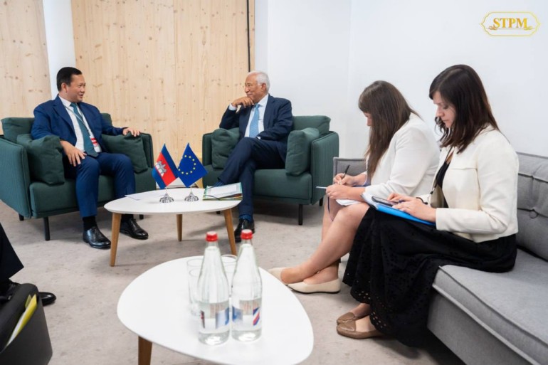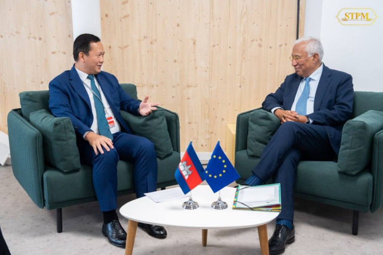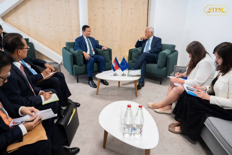 នាព្រឹក ថ្ងៃទី៩ ខែមិថុនា ឆ្នាំ២០២៥, សម្តេចមហាបវរធិបតី ហ៊ុន ម៉ាណែត នាយករដ្ឋមន្ត្រីនៃព្រះរាជាណាចក្រកម្ពុជា បានជួបពិភាក្សាទ្វេភាគីជាមួយ ឯកឧត្តម António Costa ប្រធានក្រុមប្រឹក្សាអឺរ៉ុប ក្នុងឱកាសអញ្ជើញចូលរួមសន្និសីទលើកទី៣ របស់អង្គការសហប្រជាជាតិ ស្ដីពីមហាសមុទ្រ (UNOC3) នៅថ្ងៃទី០៨-១៣ ខែមិថុនា ឆ្នាំ២០២៥ នៅទីក្រុងនីស ប្រទេសបារាំង។