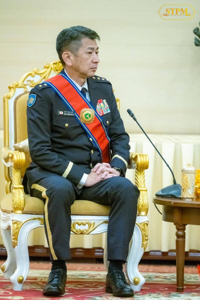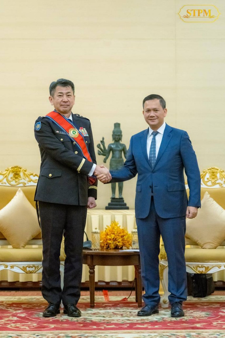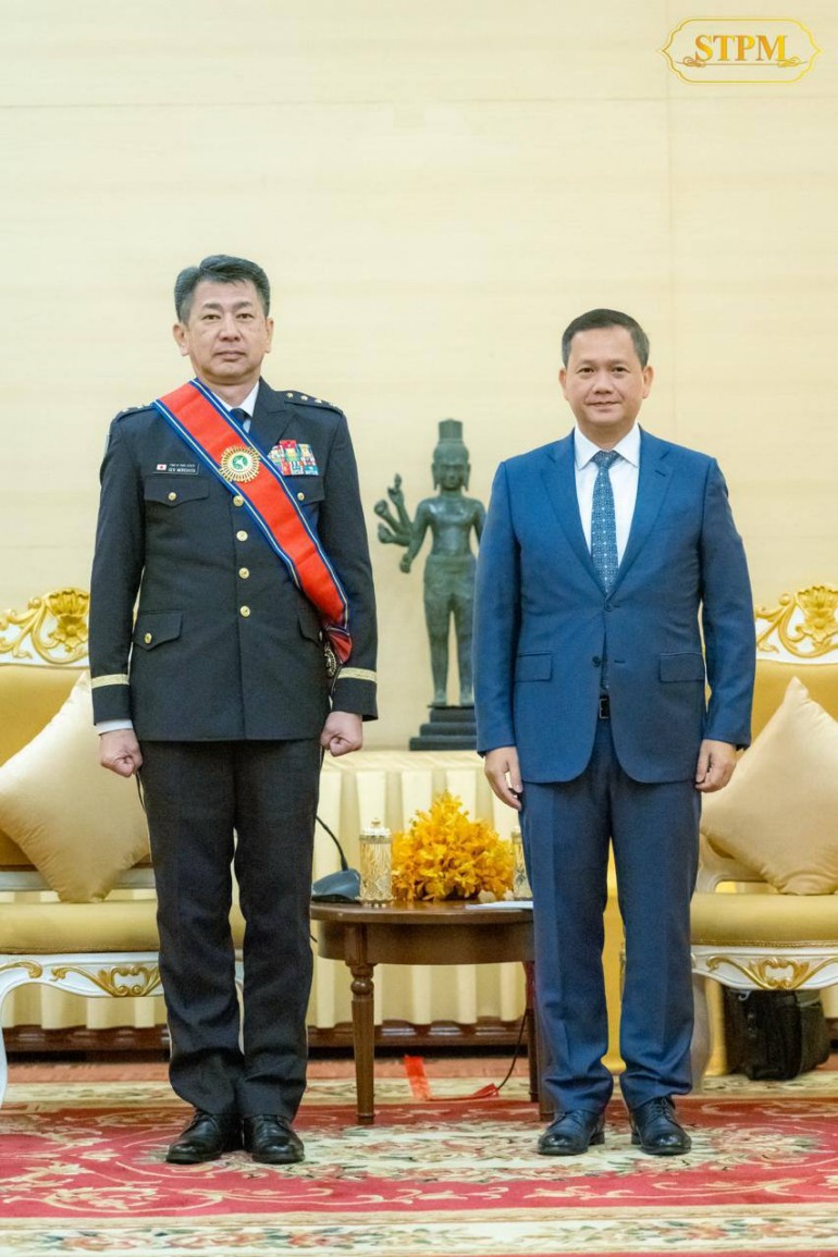 នាព្រឹក ថ្ងៃទី២៣ ខែមិថុនា ឆ្នាំ២០២៥, សម្តេចមហាបវរធិបតី ហ៊ុន ម៉ាណែត នាយករដ្ឋមន្ត្រីនៃព្រះរាជាណាចក្រកម្ពុជា បានអនុញ្ញាតឱ្យឯកឧត្តម នាយឧត្តមសេនីយ៍ MORISHITA Yasunori មេបញ្ជាការកងស្វ័យការពារជើងគោកជប៉ុន ចូលជួបសម្ដែងការគួរសម និងពិភាក្សាការងារ នៅសណ្ឋាគារសុខាអង្គរ ខេត្តសៀមរាប។