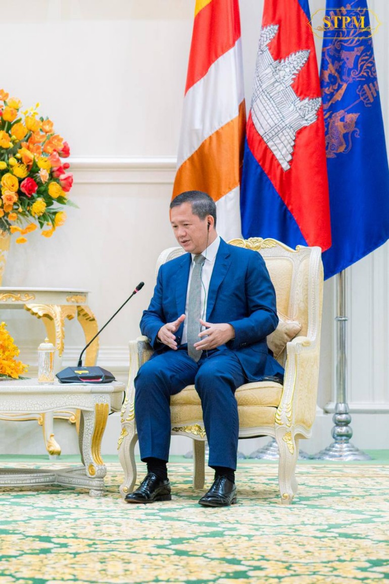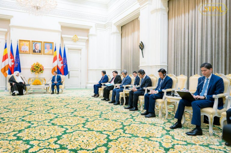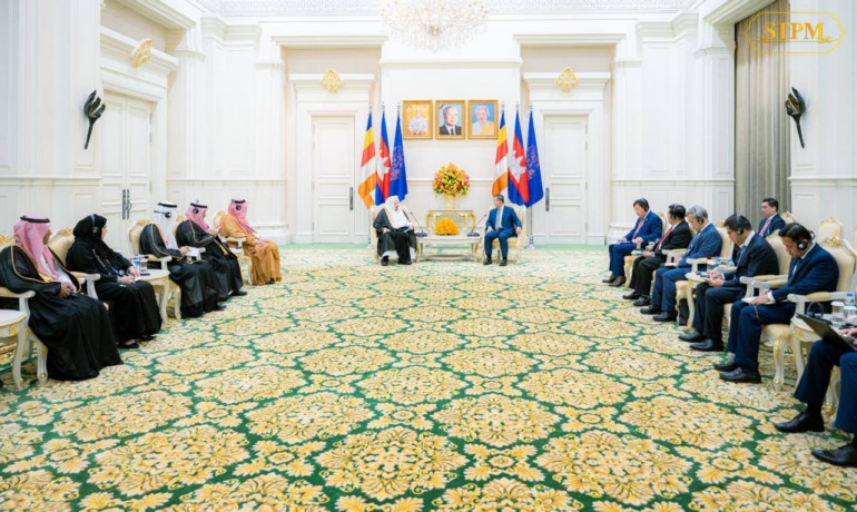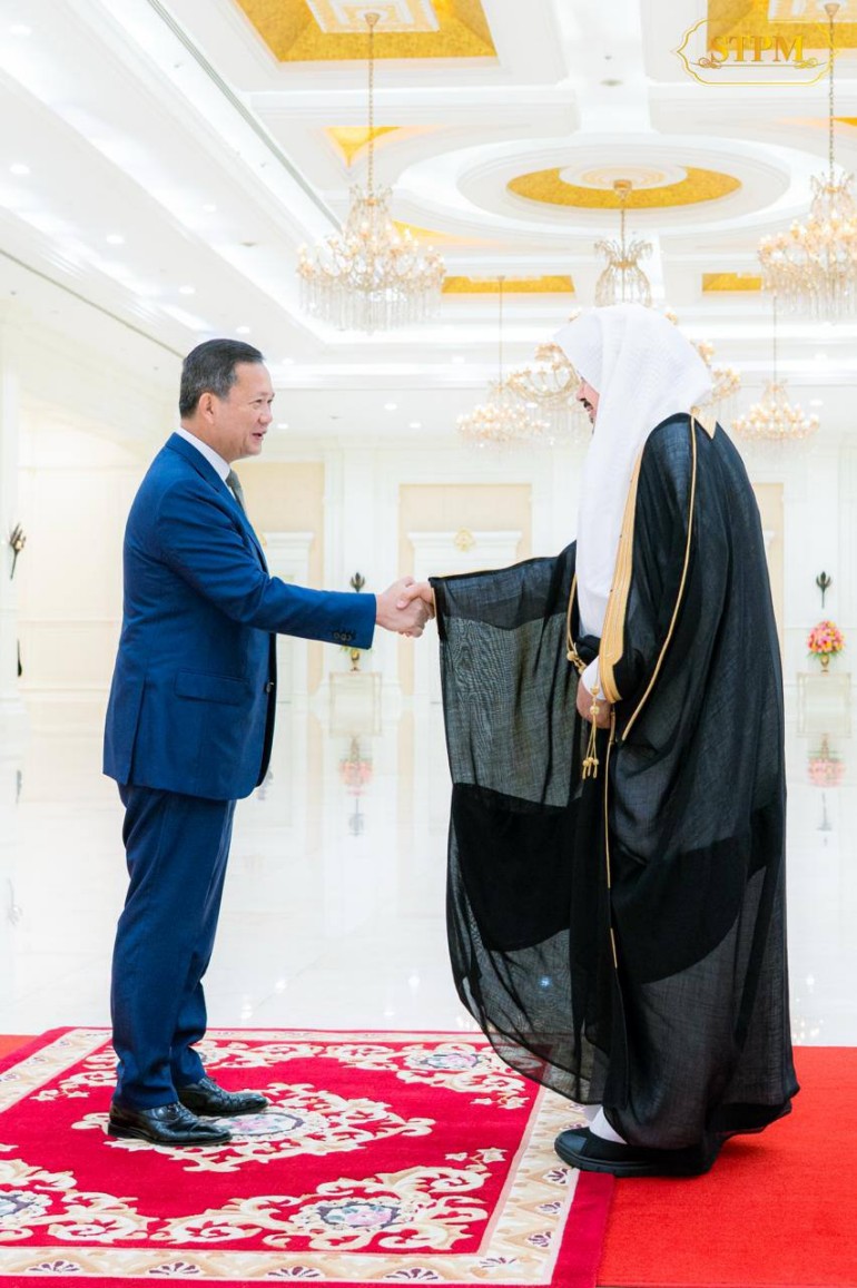 នាព្រឹក ថ្ងៃទី២ ខែកក្កដា ឆ្នាំ២០២៥, សម្តេចមហាបវរធិបតី ហ៊ុន ម៉ាណែត នាយករដ្ឋមន្ត្រីនៃព្រះរាជាណាចក្រកម្ពុជា បានទទួលជួបពិភាក្សាការងារជាមួយ ឯកឧត្តមបណ្ឌិត អាប់ឌុលឡា ប៊ីន ម៉ូហាម៉េដ ប៊ីន អ៊ីប្រាហ៊ីមអាល-សេក្ខ (Abdullah Bin Mohammed Bin Ibrahim Al-Sheikh) ប្រធានសភា នៃព្រះរាជាណាចក្រអារ៉ាប់ប៊ីសាអូឌីត នៅវិមានសន្តិភាព។