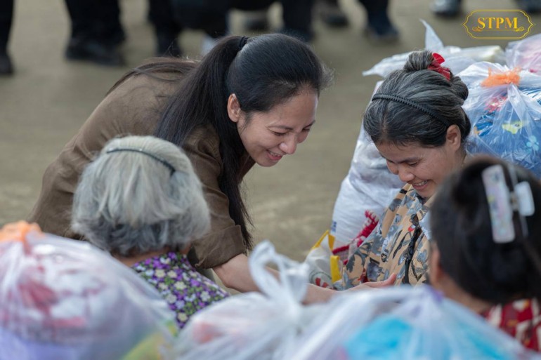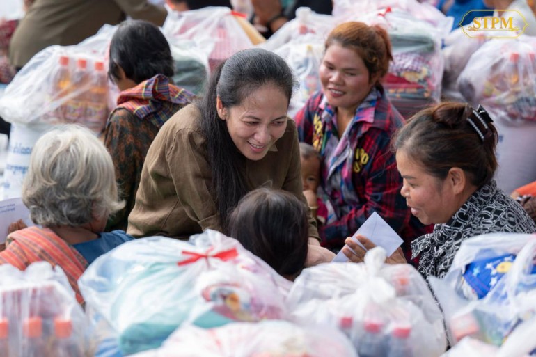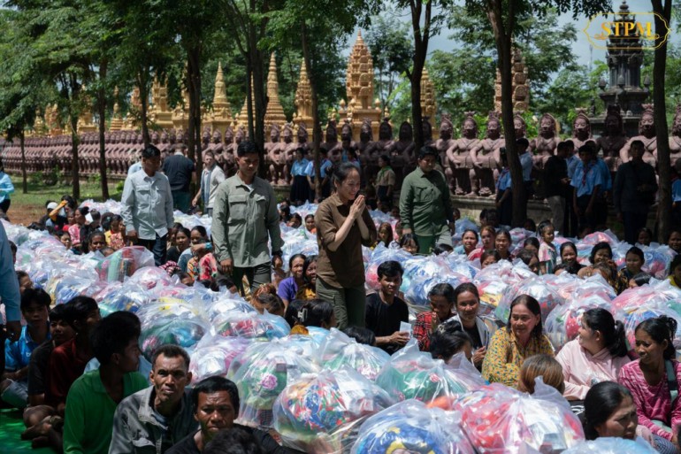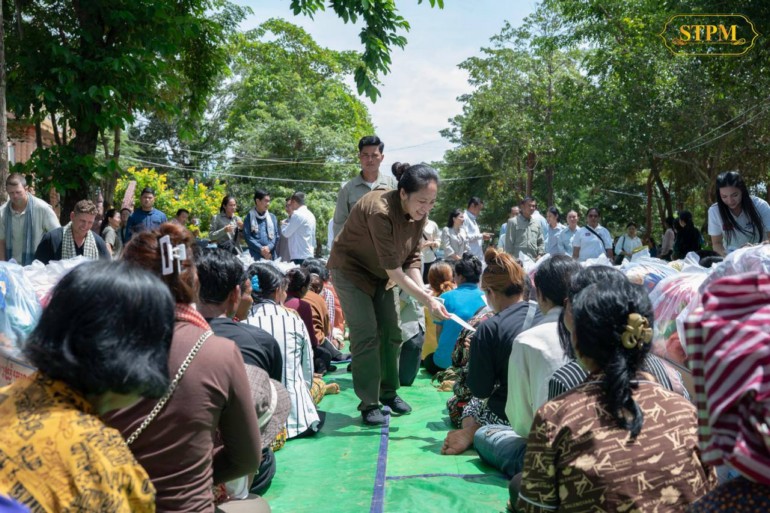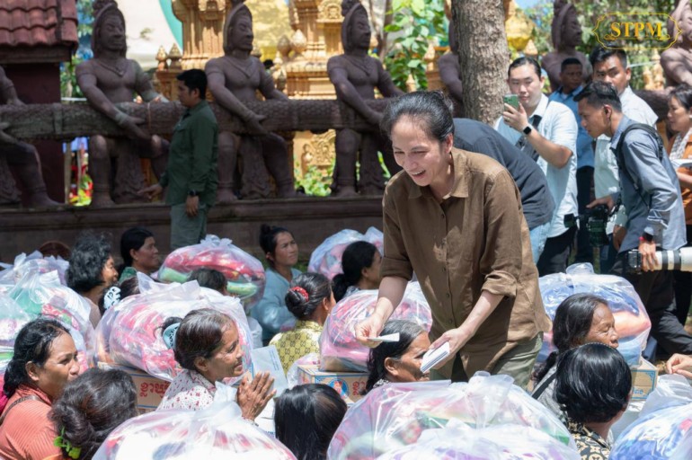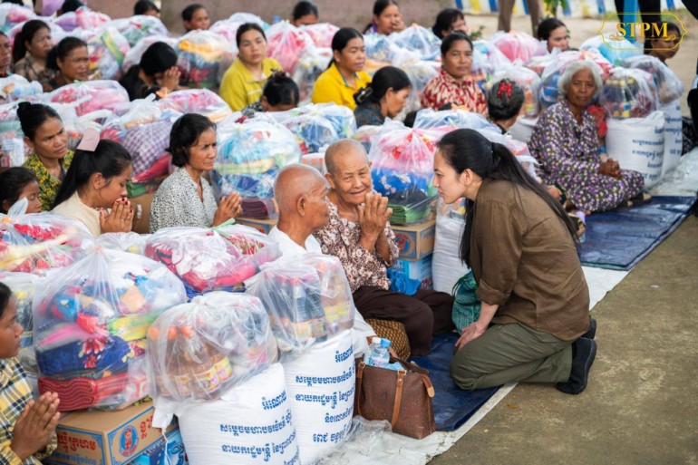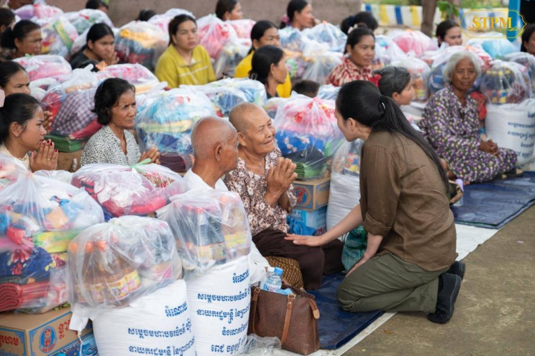 ក្នុងឱកាសនៃការអញ្ជើញជួបសួរសុខទុក្ខនេះ លោកជំទាវបណ្ឌិតបានសំណេះសំណាល និងបានផ្តល់ស្បៀងអារហារ និងរបស់របរប្រើប្រាសចាំបាច់ជាច្រើនជូន បងប្អូនប្រជាពលរដ្ឋភៀសសឹកទាំង២.៤០០គ្រួសារនូវថ្នាំពេទ្យ តង់ មុង កន្ទេល អង្រឹង ក្រម៉ា ភួយ ខ្នើយ សាប៊ូ ដែកកេស ព្រមទាំងស្បៀងអាហារ មានអង្ករ ត្រីងៀត ទឹកត្រី ទឹកស៊ីអ៊ីវ ទឹកបរិសុទ្ធ ត្រីខកំប៉ុង មី សាច់ក្រក ឆៃប៉ូវ ត្រីប្រាហើម សៀងផ្អែមជាដើមដើម្បីផ្គត់ផ្គង់បងប្អូនប្រជាពលរដ្ឋសម្រាប់ប្រើប្រាស់ និងបរិភោគដែលអាចដោះស្រាយការលំបាកនៅចំពោះមុខមួយគ្រានេះ។