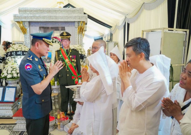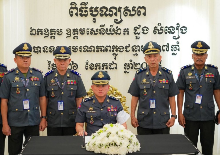ភ្នំពេញ ៖ ថ្ងៃអង្គារ ទី២៩ កក្កដា ២០២៥ ឯកឧត្តម ឧត្តមសេនីយ៍ឯក រ័ត្ន ស្រ៊ាង មេបញ្ជាការរង កងរាជអាវុធហត្ថលើផ្ទៃប្រទេស មេបញ្ជាការ កងរាជអាវុធហត្ថរាជធានីភ្នំពេញ ព្រមទាំង នាយទាហាន នាយទាហានរង និងពលទាហាន នៃកងរាជអាវុធហត្ថរាជធានីភ្នំពេញ សូមចូលរួមរំលែកទុក្ខដ៏ក្រៀមក្រំបំផុត ជាមួយ លោកស្រី អ៊ុក ស៊ុនរ៉ានី ព្រមទាំងក្រុមគ្រួសារ ដែលបានបាត់បង់ ឯកឧត្តម ឧត្តមសេនីយ៍ឯក ដួង សំនៀង មេបញ្ជាការកងពលតូចអន្តរាគមន៍លេខ៧ កងពលធំអន្តរាគមន៍លេខ៣ ដោយពលីក្នុងជន្មាយុ ៦៧ឆ្នាំ ក្នុងបុព្វហេតុការពារបូរណភាពទឹកដី កាលពីថ្ងៃសៅរ៍ ទី២៦ ខែកក្កដា ឆ្នាំ២០២៥ នៅសមរភូមិមុខ ទិសទី១ ខេត្តព្រះវិហារ ដែលការបាត់បង់នេះ គឺជាការបាត់បង់ ប្តីដ៏ល្អ ឪពុកដ៏មានព្រហ្មវិហារធម៌ បង្គោលគ្រួសារដ៏សំខាន់ និងជាសសរទ្រូងដ៏រឹងមាំមួយរបស់ជាតិ។