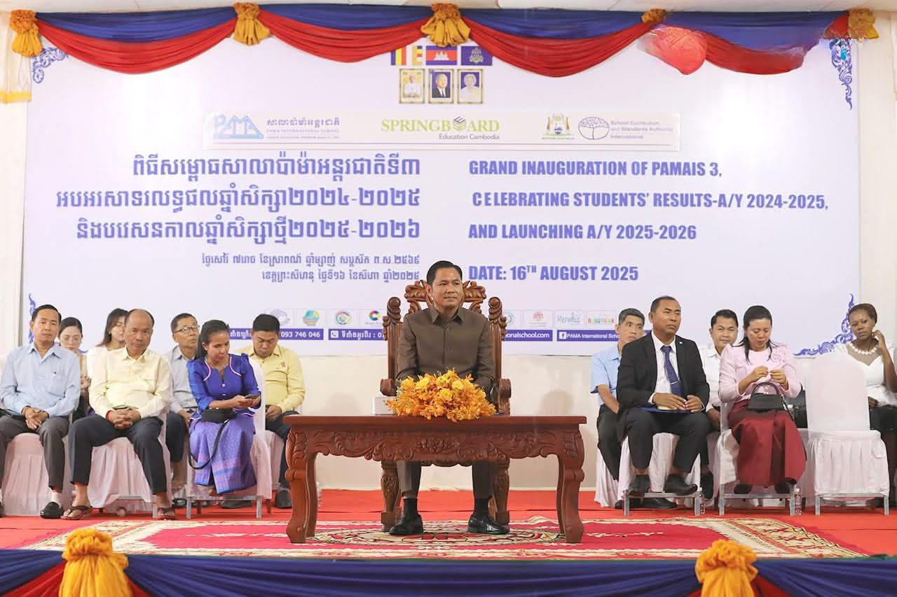 ព្រឹកថ្ងៃទី១៦ ខែសីហា ឆ្នាំ២០២៥ លោក សាមុត សុធារិទ្ធ អភិបាលរងនៃគណអភិបាលខេត្តព្រះសីហនុ តំណាងដ៏ខ្ពង់ខ្ពស់ឯកឧត្តម ម៉ាង ស៊ីណេត បានអញ្ជើញជាអធិបតី ពិធីអបអរសាទរលទ្ធផលសិក្សាប្រចាំឆ្នាំ២០២៤-២០២៥ និងការសម្ពោធដាក់ឱ្យប្រើប្រាស់ទីតាំងថ្មីសាលាប៉ាម៉ាអន្តរជាតិ និងការប្រកាសបើកបវេសនកាលឆ្នាំសិក្សាថ្មី ឆ្នាំ ២០២៥-២០២៦ស្ថិតនៅតាមបណ្តោយផ្លូវលេខ១១១ ភូមិ៣ សង្កាត់លេខ២ ក្រុងព្រះសីហនុ ខេត្តព្រះសីហនុ។