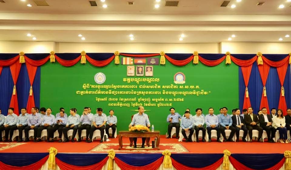 នាព្រឹក ថ្ងៃទី១៦ ខែសីហា ឆ្នាំ២០២៥ ឯកឧត្តម ហ៊ុន ម៉ានី ប្រធានសហភាពសហព័ន្ធយុវជនកម្ពុជា (ស.ស.យ.ក.) បានអញ្ជើញជាអធិបតី ក្នុងកម្មវិធីវគ្គបណ្តុះបណ្តាលស្តីពី ការចុះឈ្មោះស្វែងរកការងារ ដល់សមាជិក សមាជិកា ស.ស.យ.ក. ជាភ្នាក់ងារព័ត៌មានទីផ្សារការងារនៃវិស័យការងារ និងបណ្តុះបណ្តាលវិជ្ជាជីវៈ នៅមជ្ឈមណ្ឌលសន្និបាត និងពិព័រណ៍កោះពេជ្រ