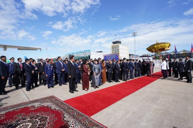 រាជធានីភ្នំពេញ ៖ នៅព្រឹកថ្ងៃសៅរ៍ ១៤រោច ខែស្រាពណ៍ ឆ្នាំម្សាញ់ សប្តស័ក ពុទ្ធសករាជ ២៥៦៩ ត្រូវនឹងថ្ងៃទី២៣ ខែសីហា ឆ្នាំ២០២៥ នេះ សម្ដេចអគ្គមហាសេនាបតីតេជោ ហ៊ុន សែន ប្រធានក្រុមឧត្ដមប្រឹក្សាផ្ទាល់ព្រះមហាក្សត្រ និងជាប្រធានព្រឹទ្ធសភា នៃព្រះរាជាណាចក្រកម្ពុជា និងសម្ដេចកិត្តិព្រឹទ្ធបណ្ឌិត ប៊ុន រ៉ានី ហ៊ុនសែន បានអញ្ជើញថ្វាយព្រះរាជដំណើរព្រះករុណា ព្រះបាទ សម្ដេចព្រះបរមនាថ នរោត្តម សីហមុនី ព្រះមហាក្សត្រ នៃព្រះរាជាណាចក្រកម្ពុជា និងសម្តេចម៉ែ ព្រះមហាក្សត្រី នរោត្តម មុនិនាថ សីហនុ យាងទៅទីក្រុងប៉េកាំងប្រទេសចិន ដើម្បីពិនិត្យព្រះរាជសុខភាព។