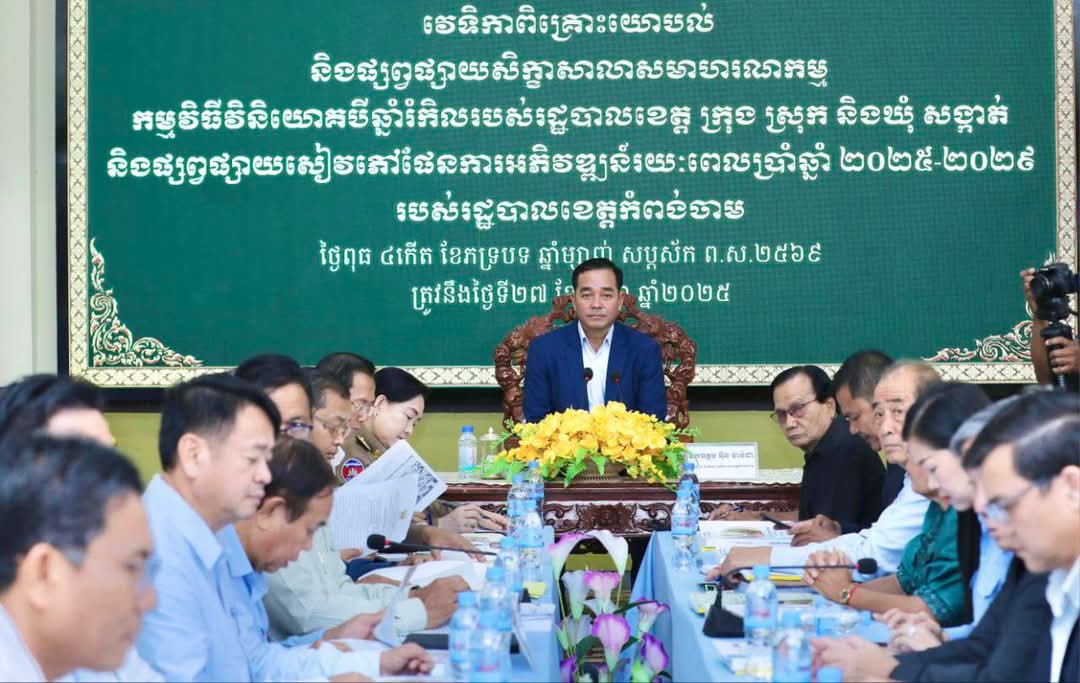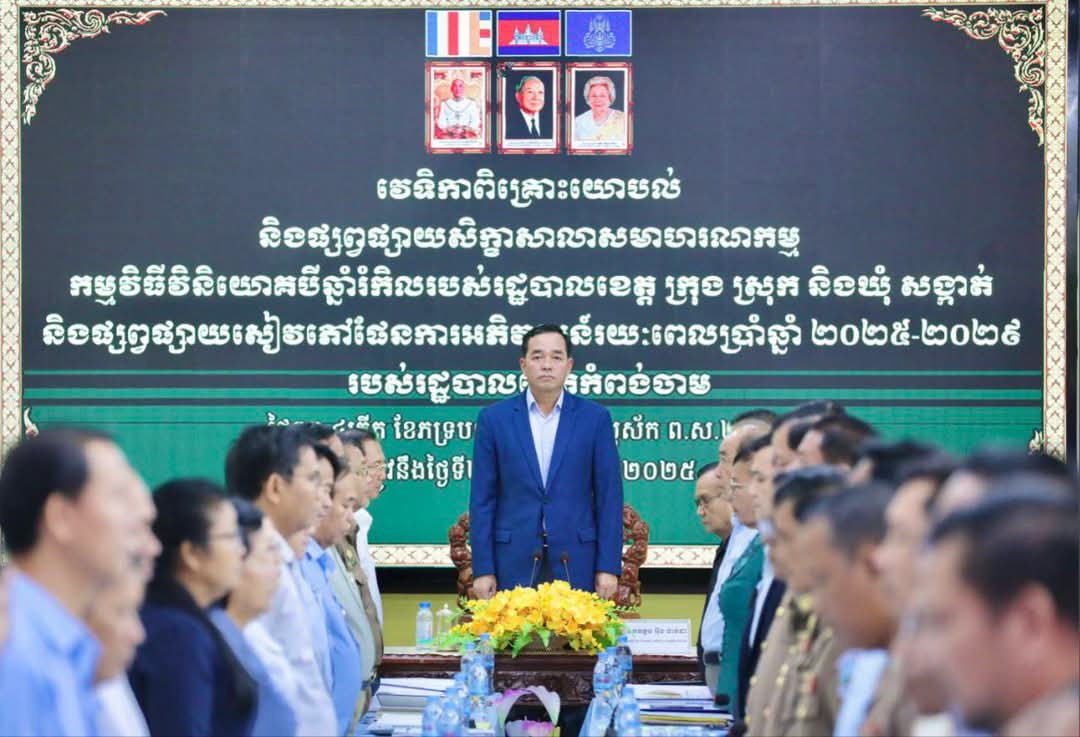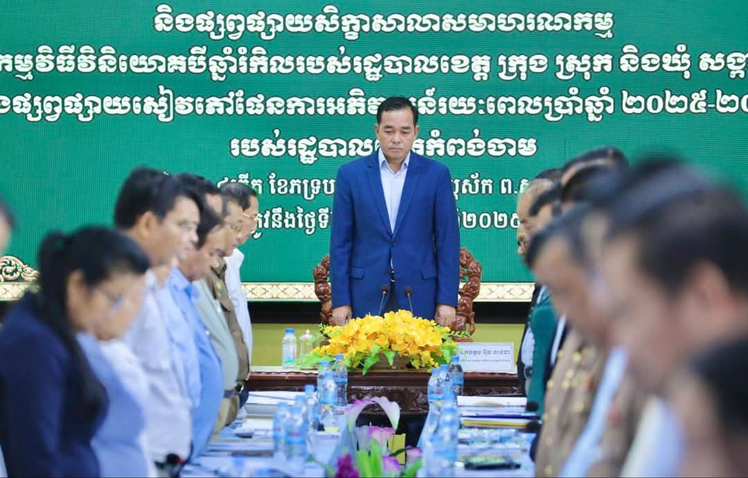 កំពង់ចាម: អភិបាលនៃគណៈអភិបាលខេត្តកំពង់ចាម ឯកឧត្ដម អ៊ុន ចាចាន់ដា បានថ្លែងថា យើងត្រូវបន្តធ្វើការអភិវឌ្ឍន៍ជារៀងរាល់ឆ្នាំ ប្រកបដោយនិរន្តភាព ចីរភាពបរិស្ថាន ធនធានធម្មជាតិ និងការបន្សំនឹងបម្រែបម្រួលអាកាសធាតុ អភិវឌ្ឍន៍សេដ្ឋកិច្ច សង្គមកិច្ច ធ្វើយ៉ាងណាឱ្យជីវភាពរស់នៅរបស់ប្រជាពលរដ្ឋទាំងអស់មានភាពប្រសើរឡើង ទាំងប្រាក់ចំណូលគ្រួសារ ទាំងសុខុមាលភាព និងការងារអប់រំសិក្សាធិការ ជាមូលដ្ឋាន។ ការថ្លែងបែបនេះក្នុងវេទិកាពិគ្រោះយោបល់ និងផ្សព្វផ្សាយសិក្ខាសាលាសមាហរណកម្ម កម្មវិធីវិនិយោគបីឆ្នាំរំកិល នាព្រឹកថ្ងៃទី២៧ ខែសីហា ឆ្នាំ២០២៥ នៅមន្ទីរផែនការខេត្តកំពង់ចាម ។